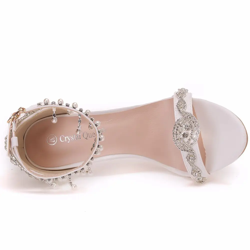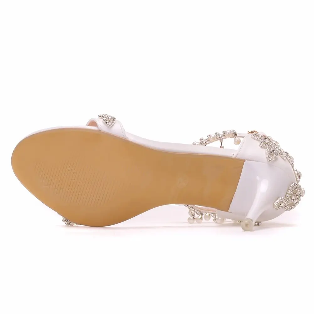Босоножки женские свадебные на высоком каблуке с ремешком на щиколотке