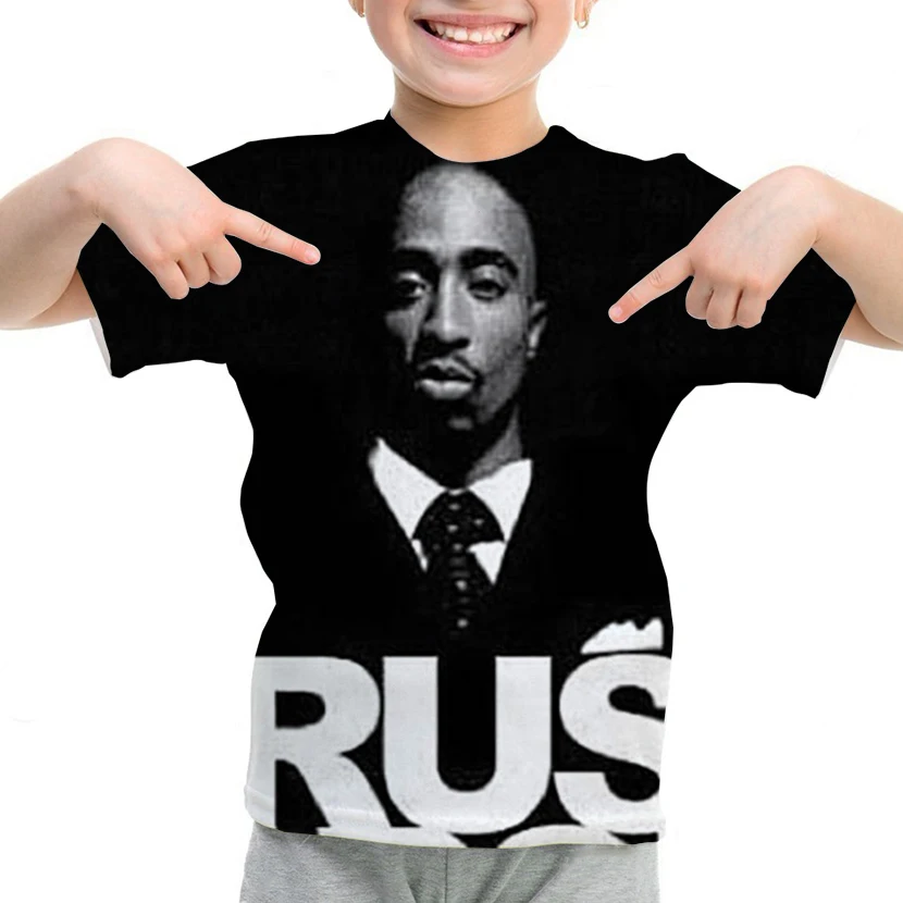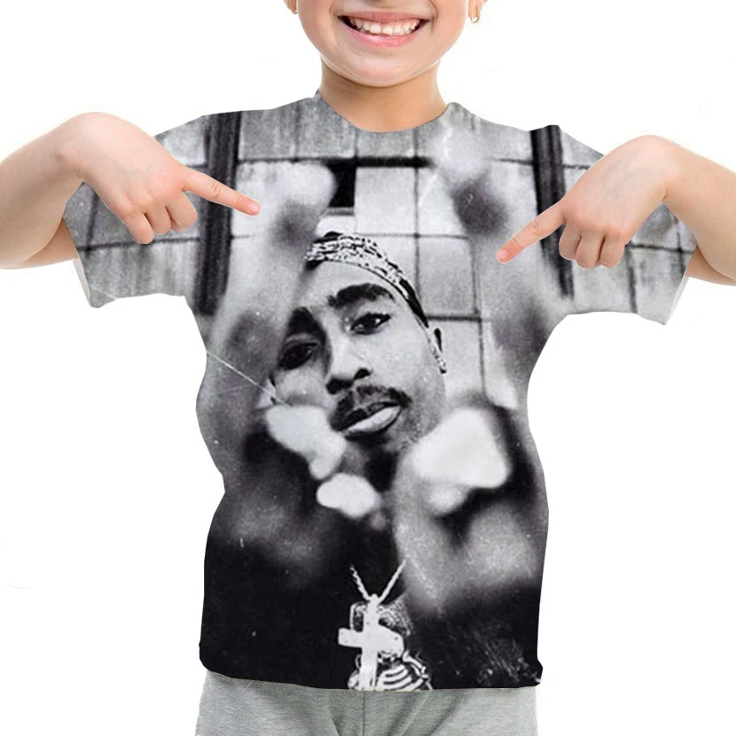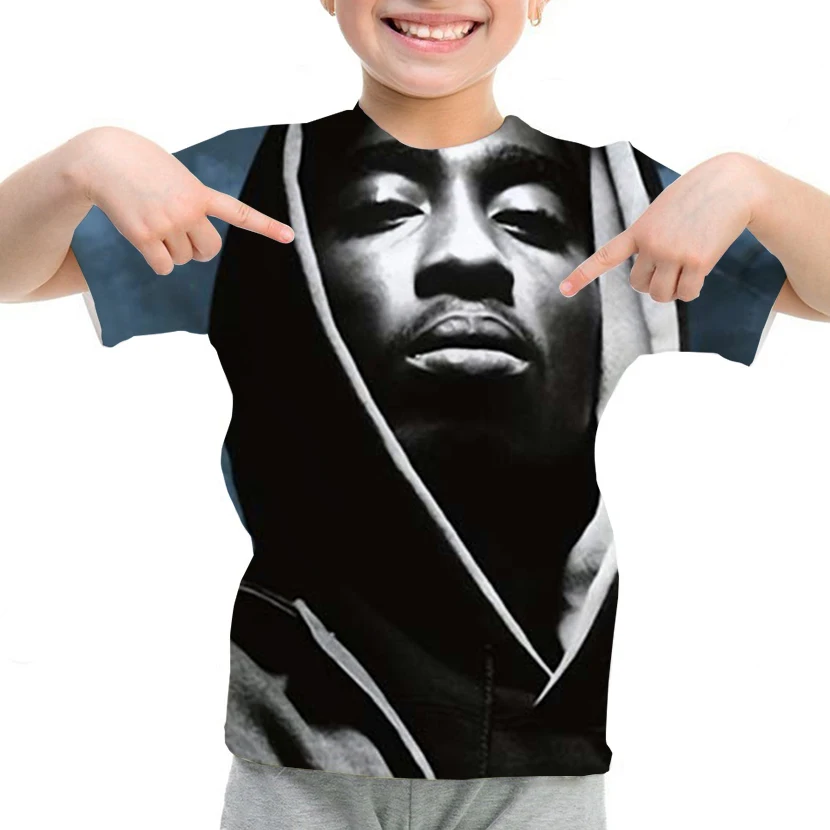 Футболка с 3d принтом Tupac 2Pac Детская футболка с персонажами из мультфильмов Kawaii футболки с забавным аниме для мальчиков и девочек, крутая Детская футболка с графикой