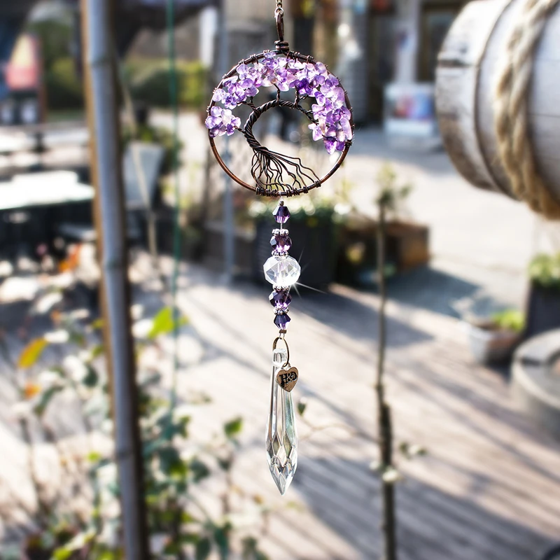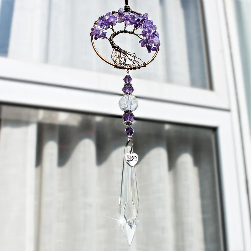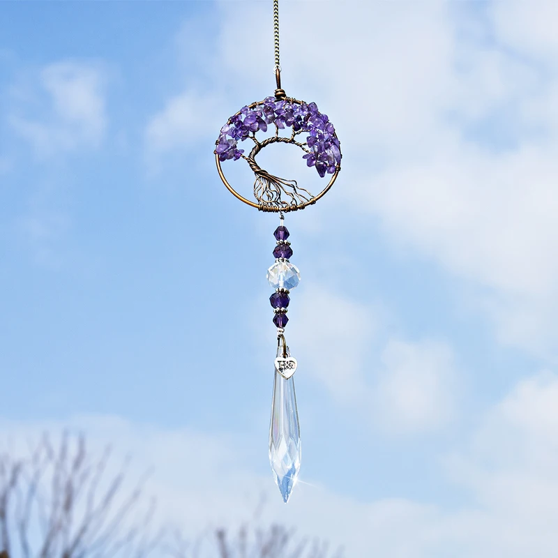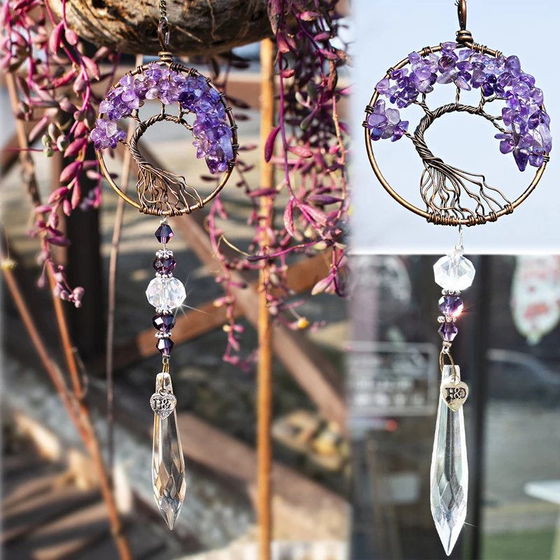 Подвеска H D, аметист, древо жизни, Ловец Солнца, радуга, исцеляющий декор для окон, автомобиля, свадьбы Вечерние