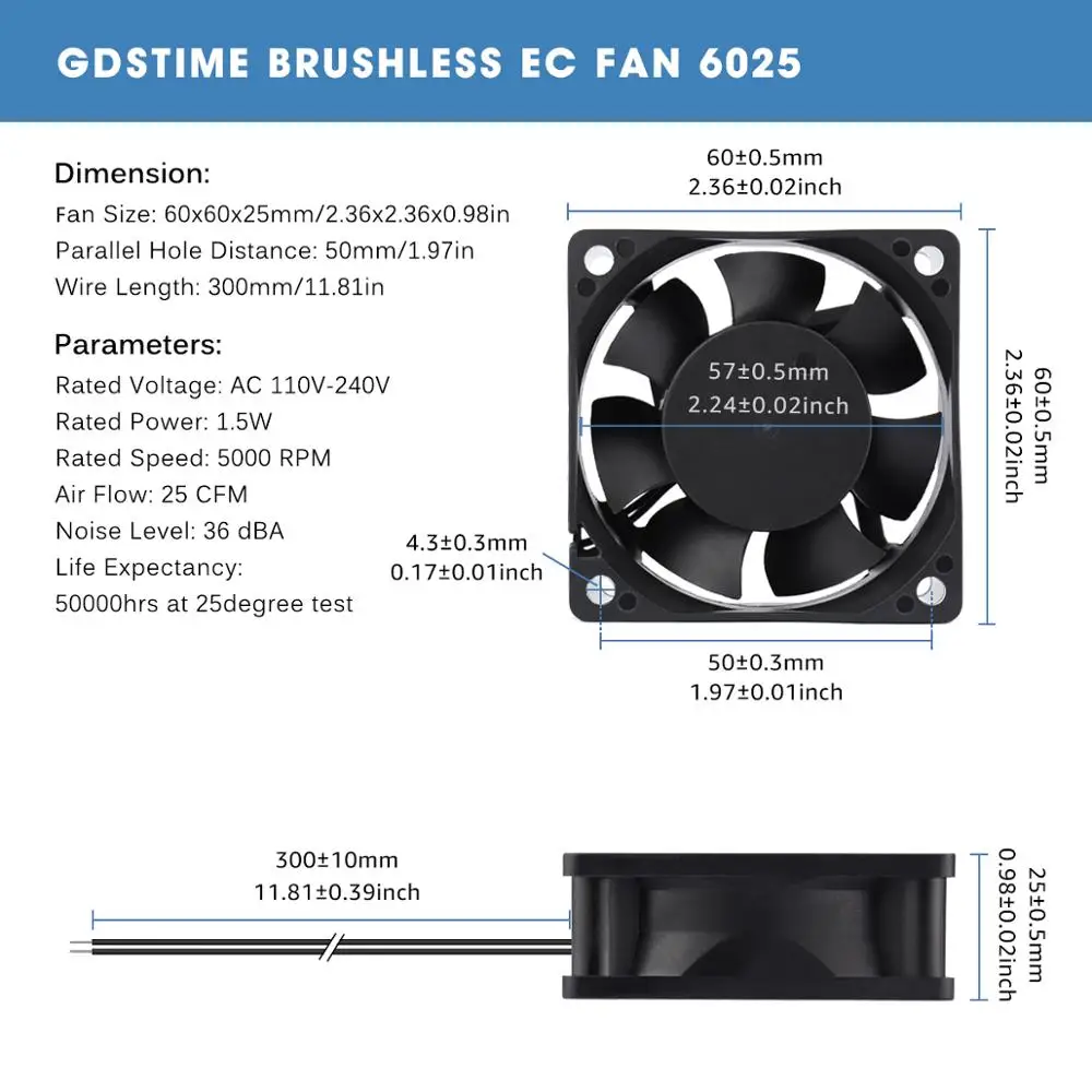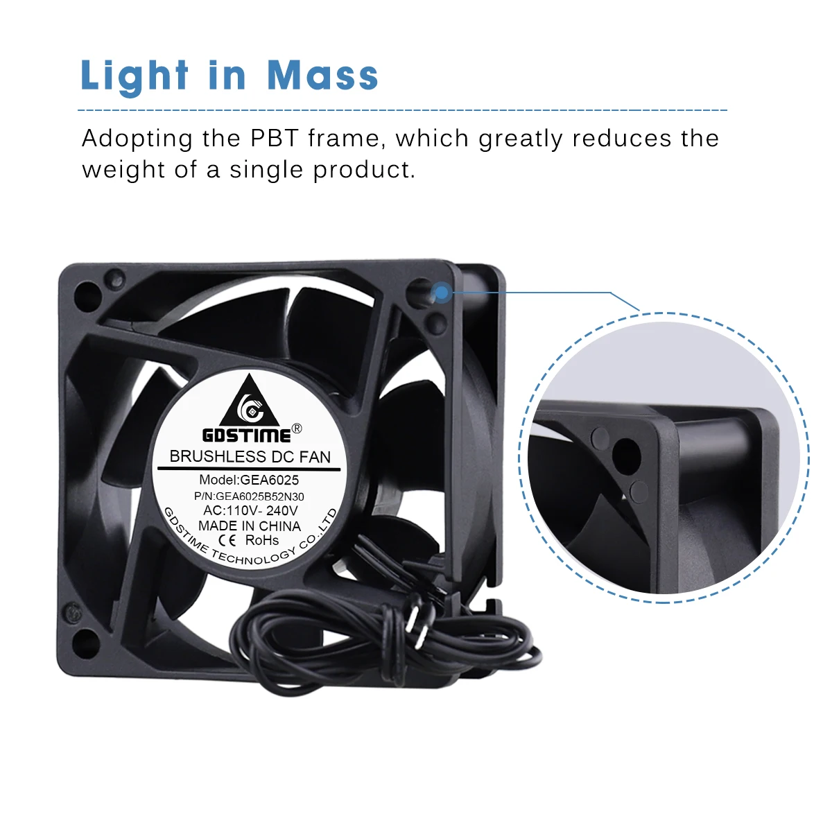 1 шт. осевой кулер 6 см 6025B EC 2,4 дюймов шарикоподшипник 60*60*25 мм AC 110 в 115 в 220 в 240 в EC Бесщеточный Охлаждающий вентилятор 60 мм x 25 мм