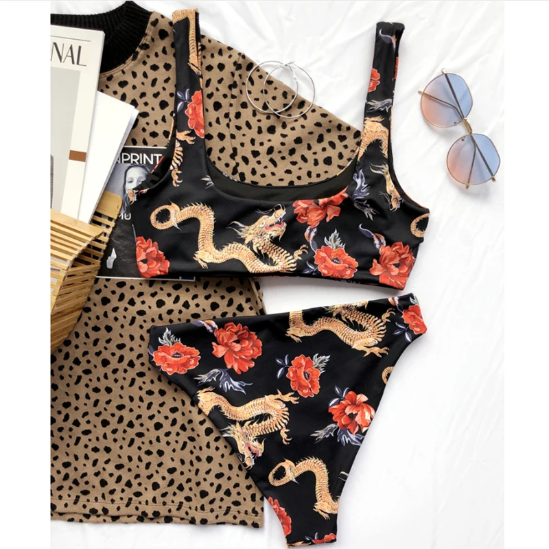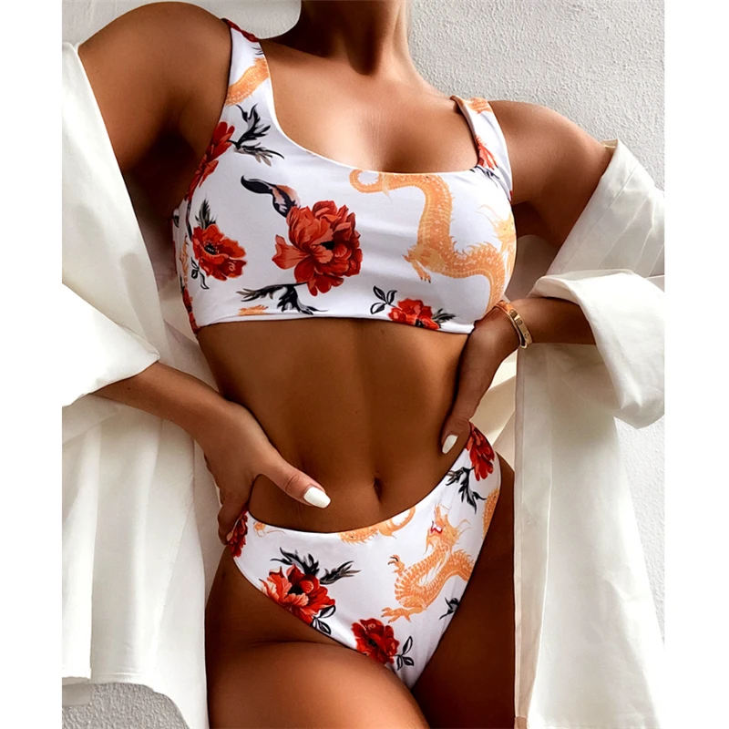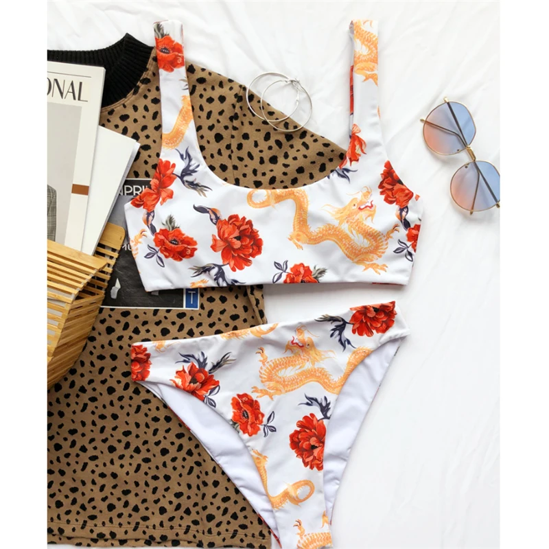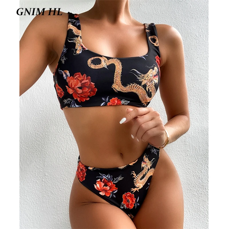 Женский купальник бикини GNIM, бразильский купальник с высокой талией и цветочным принтом, пляжная одежда из двух предметов, комплект для лета, 2020