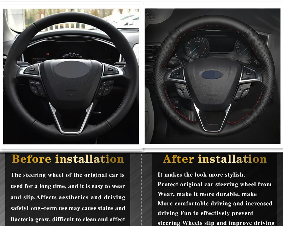Чехол рулевого колеса автомобиля рулевая оплетка для Ford Mondeo Ford Focus 3 2015-2018, черная прошитая вручную искусственная кожа