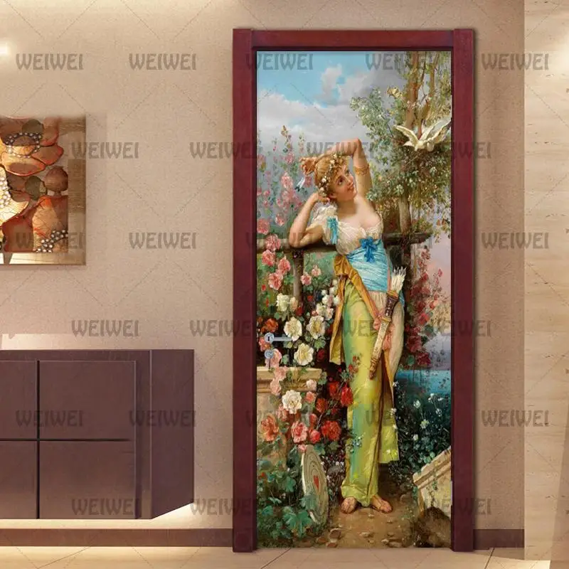 Европейский стиль ПВХ водостойкая дверная наклейка s обои для гости...