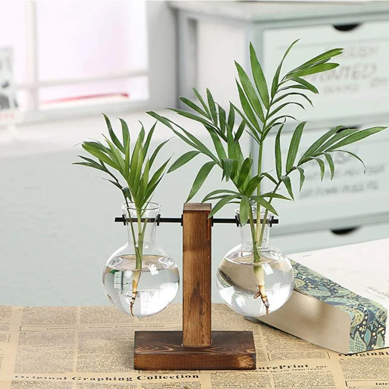 Стеклянная ваза, домашнее украшение, деревянная подставка, ваза, настольная креативная Гидропоника для дома, сада, офиса, свадебное украшение, креативный прозрачный