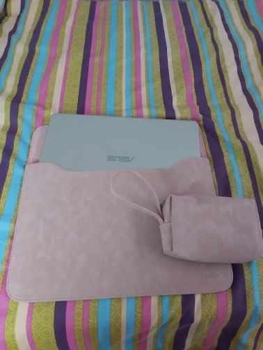 Preciosa, tal cual la descripción!! Lo recomiendo 100%. Mi ordenador es de 14 pulgadas y aunque al llegar, pensé que sería grande!! Para nada, se adapta super bien, gracias al tejido tan grueso que tiene. Además te viene con un estuche, yo lo he utilizado para meter el cargador, cabe perfectamente. Estoy encantada!!