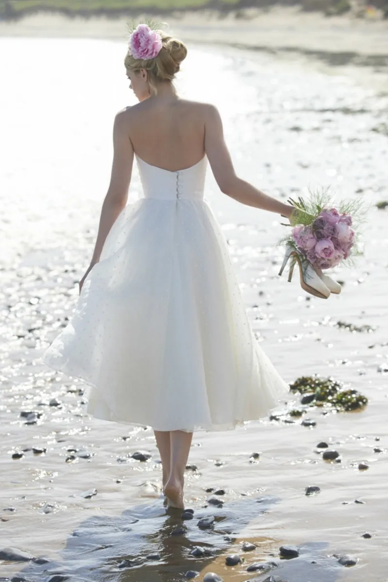 Женское свадебное платье без бретелек, ТРАПЕЦИЕВИДНОЕ платье из органзы до середины икры с застежкой-молнией сзади, 2020