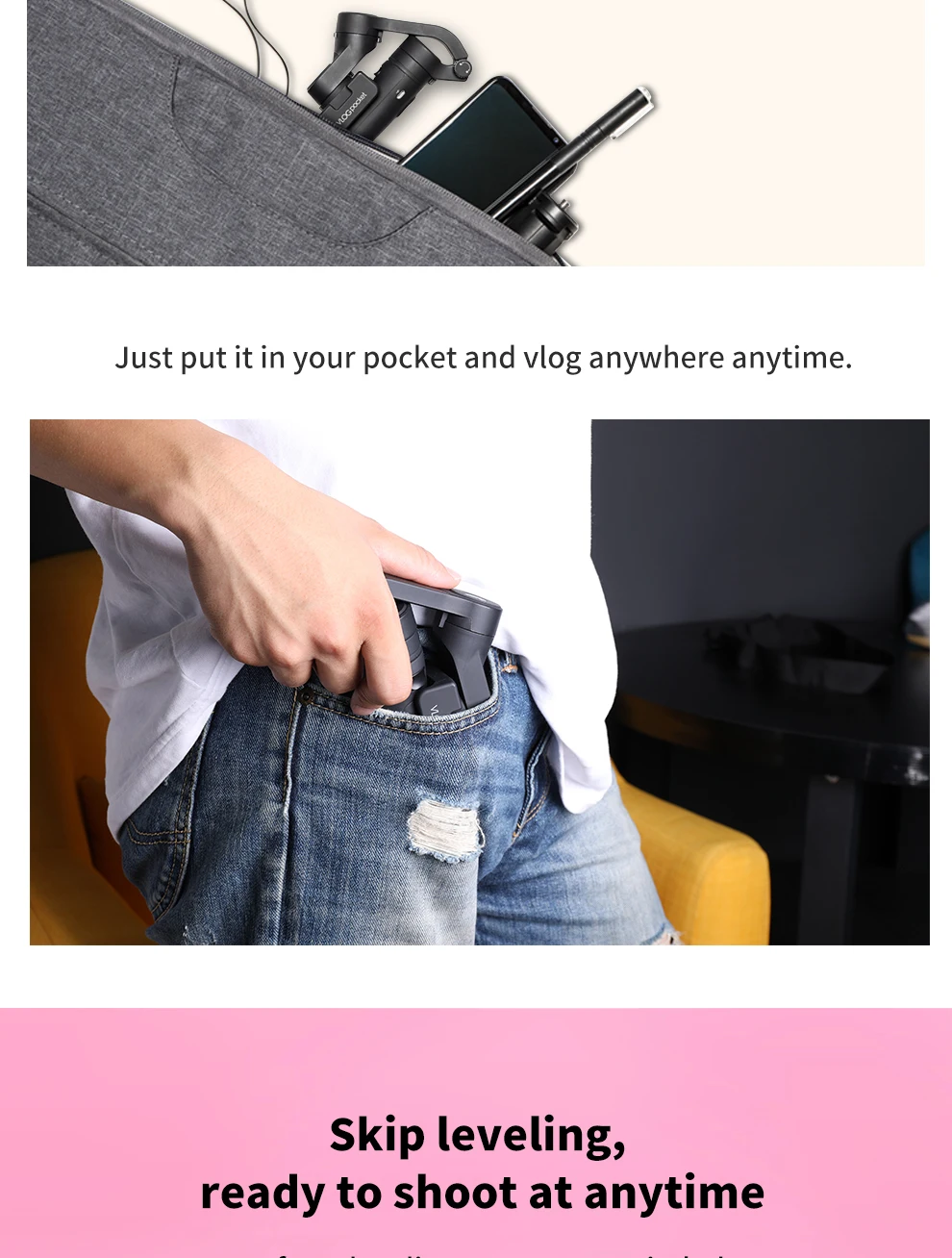 【Легко носить с собой, легко vlog】складной дизайн в форме Крыльев Орла делает его маленьким и портативным. Просто положите VLOGpocket в карман и сделайте vlog в любом месте в любое время. 【Нет необходимости балансировать, готов к съемке в любое время 】 по сравнению с обычными gimbals, вы можете использовать VLOGpocket непосредственно без балансировки. Просто установите телефон на карданный шарнир, включите его и начните! Вы можете захватывать каждый прекрасный момент, не тратя времени. 【Одна кнопка для переключения режима съемки 】всего один щелчок для переключения между портретным режимом и ландшафтным режимом. VLOGpocket предназначен не только для ежедневного vlog, но и для прямого эфира и создания короткого видео на TikTok. 【Поддержка встроенной камеры 】VLOGpocket является пионером в поддержке встроенной камеры Smartphones. Без подключения приложения VLOGpocket предоставляет тот же опыт для пользователей IOS и Android. 【Долгий Срок службы батареи удовлетворяет все ваши потребности 】 Срок службы батареи составляет до 14 часов, что достаточно для ежедневных нужд vloggers. Стабилизация всегда будет вместе с вашей страстью.