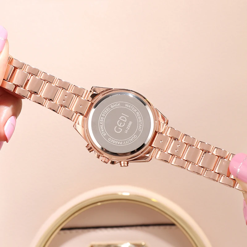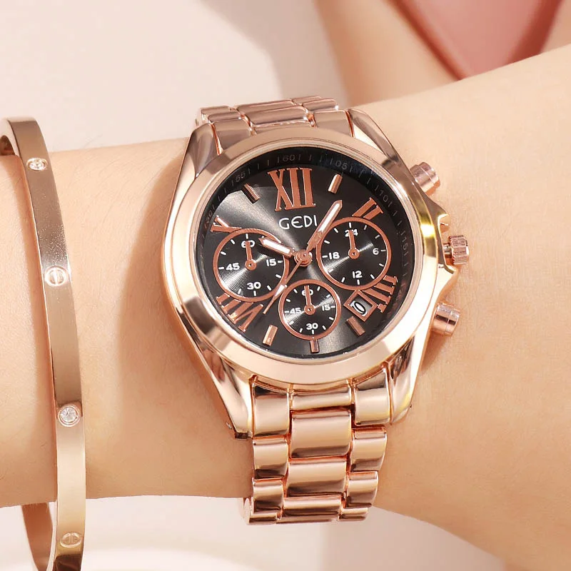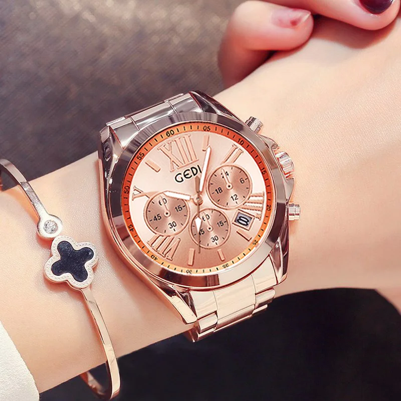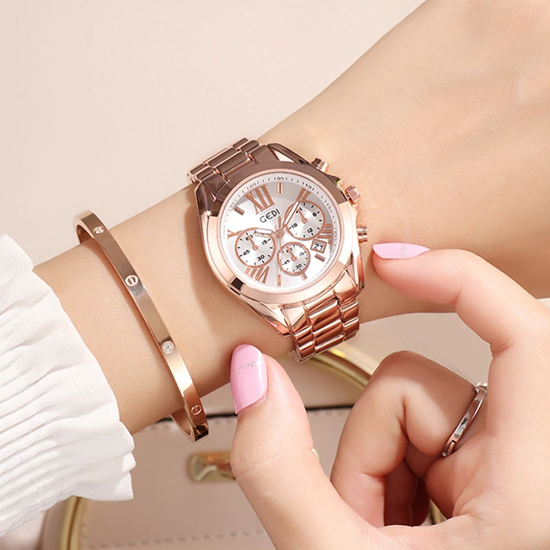 Часы женские GEDI, розовое золото, браслет, повседневные, кварцевые