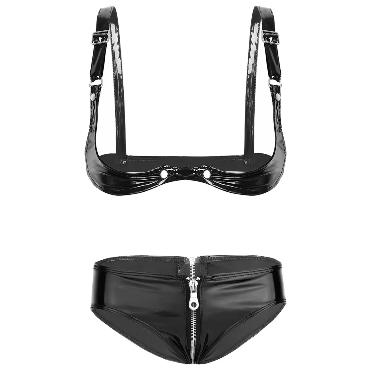 Особенности:Женский топ с бюстгальтером wetlook и Трусики-бикини, комплекты нижнего белья, гладкая и легкая ткань, обеспечивают Вам комфортную посадку.Настраиваемая длина провода бесплатную поддержку и открытые чашечки бюстгальтера с 3-мя рядами красивых два крючка и эластичная резинка на талии с низкой посадкой на молнии открытое межножье дизайнерское нижнее белье.Изготовлено из искусственной кожи, легкий, мягкий и удобный, идеально поддерживает тело.Отличный подарок для бакалавра, девичника, девушки, невесты, любовника, праздника, Дня Святого Валентина, свидания, пары.Пожалуйста, проверьте размер перед покупкой, ручная стирка только в холодной воде.