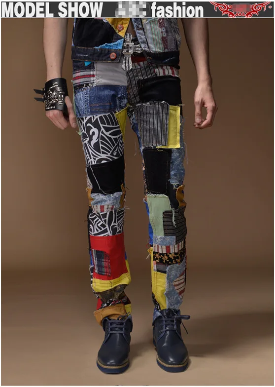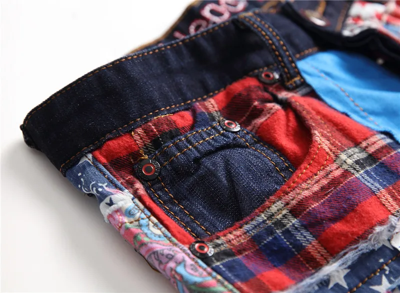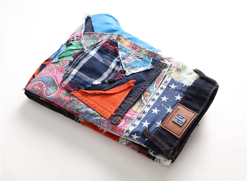2022 осень зима мужские лоскутные рваные джинсы стрейч с вышивкой т...