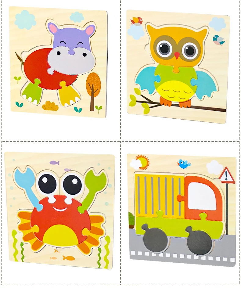 Детские игрушки, деревянные 3d пазлы, Танграм, Обучающие Мультяшные животные, развивающие игрушки для детей