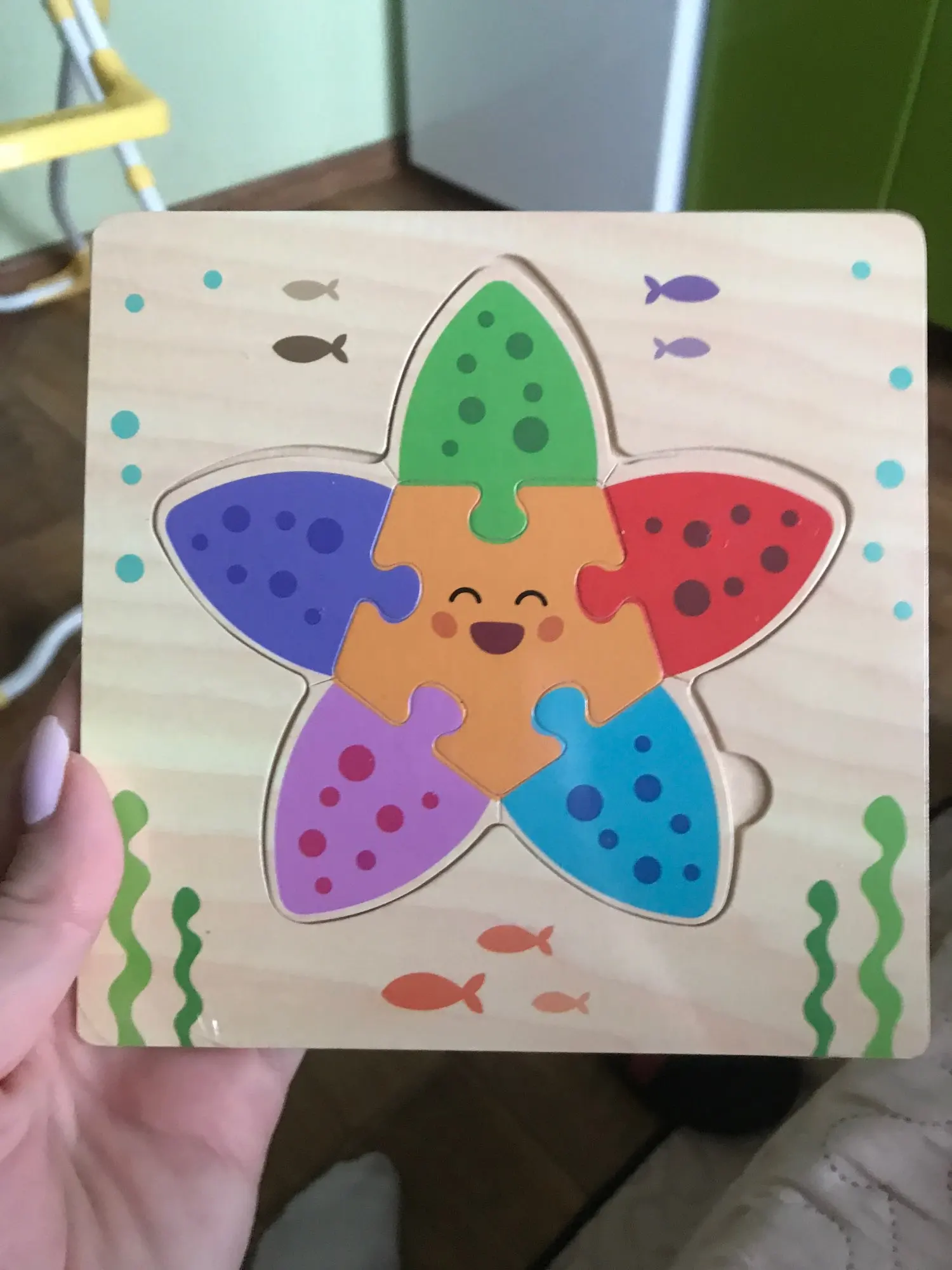 Пришло за 3 недели. Милая тон пять фанерка. Пока не дарила, без магнита, думаю будет рано малышу чуть больше года. Пока подождём.. подарю, расскажу. А так милый подводный мир! Идея и задумка замечательная. Пробуйте и главное надо малышу объяснять!