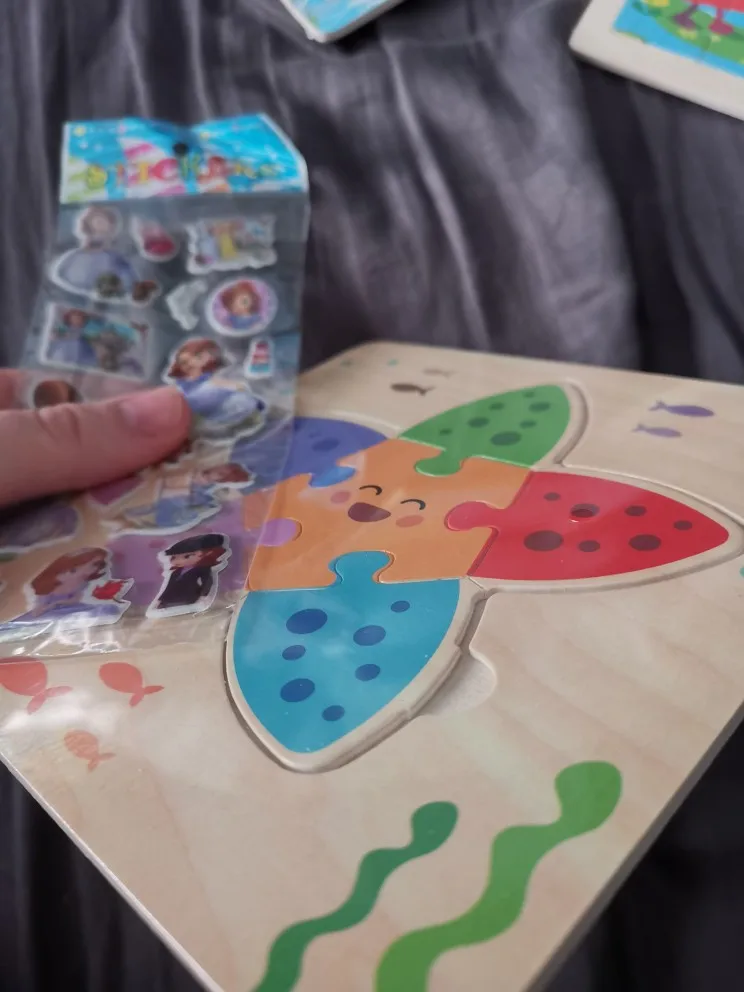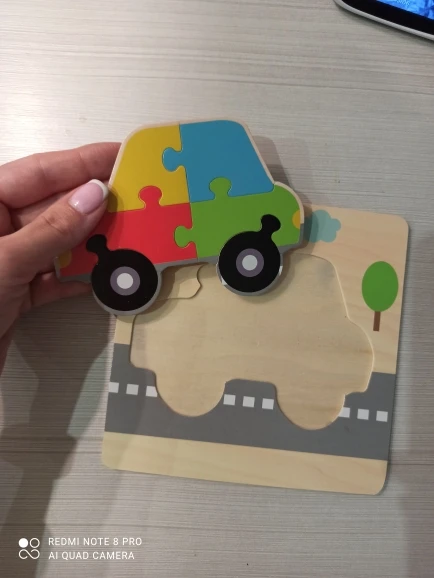 Заказала 10.12.20, посылка пришла 02.02.21, считаю, что долговато. Хорошо упаковано, без запаха, обработка дерева хорошая, ребёнок занозу не загонит. Яркий рисунок, хорошо крепятся сами пазлы.