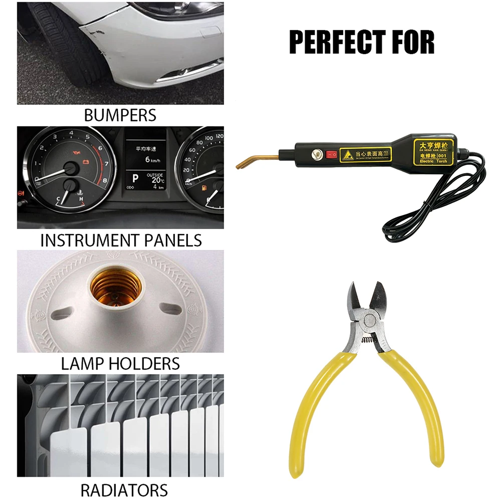 Этот продукт подходит для ремонта и укрепления пластиковых частей всех автомобилей. Такие как бамперы, панели приборов, держатели ламп, пластиковые кольца, радиаторы и пластиковые устройства для автомобилей и мотоциклов. Особенности: Этот набор инструментов для ремонта сварки предназначен для ремонта пластиковых деталей автомобиля. Восстановите поврежденные части, Продлите срок службы. Различные типы ремонтных гвоздей для удовлетворения ваших различных потребностей. Прост в эксплуатации и удобен в использовании. Широкое применение, подходит для ремонта бампера, приборной панели, держателя лампы, пластикового кольца, радиатора, автомобиля и мотоцикла пластикового устройства. Спецификация: Вилка: штепсельная вилка европейского стандарта Напряжение: 220 В Мощность: 30 Вт Входной ток: 15а Материал: АБС + нержавеющая сталь Цвет: черный Длина кабеля: 1,5 м Посылка: 29*23*5 см/11,42*9,06*1,97 дюйма Вес посылки: 1000 г Функция 1:Пластиковая Сварка (без гвоздей) Сварка наполнителя, ремонт отверстий и устранение зазоров. Функция 2:Посадка ногтей с помощью различных ремонтных гвоздей позволяет восстанавливать горизонтальные, вертикальные, длинные и короткие трещины. Функция 3:Горячий разглаживающий пластиковый нагрев сглажен, сварен, вдвое прочен и красиво добавлен. Функция 4:Термическая Резка используется для горячей резки пластиковой веревки, плоской резки и автоматической герметизации. Функция 5:Оловянная Сварка нагревается/охлаждение быстрее, эффективнее и энергоэффективнее, чем обычные сварочные аппараты. Посылка: 1 x набор для ремонта (как показано на рисунке) 4 x плоские скобы с горячей волной 1 x ремонтные плоскогубцы 1 х кабель