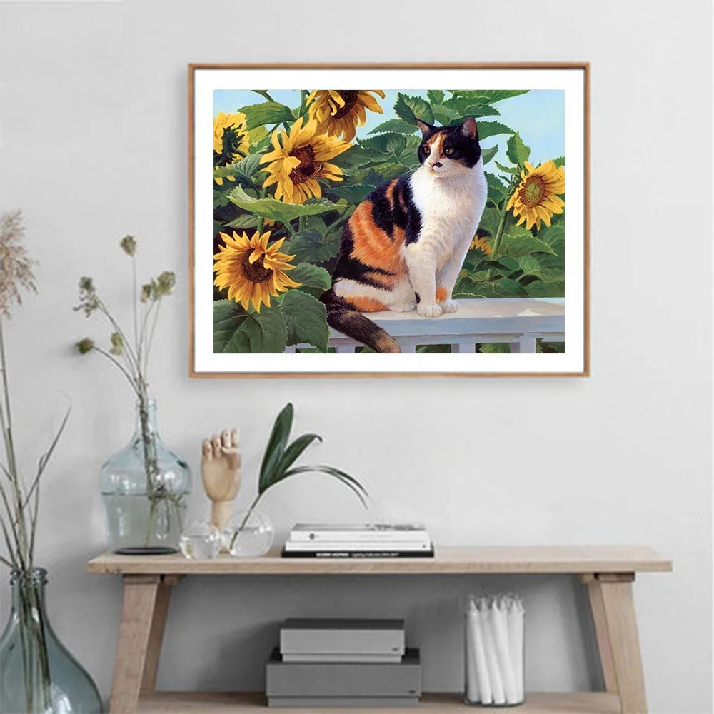 Цветок подсолнуха кошка Алмазная картина круглая полная дрель Nouveaute DIY мозаика вышивка 5D Вышивка крестиком цветочное животное