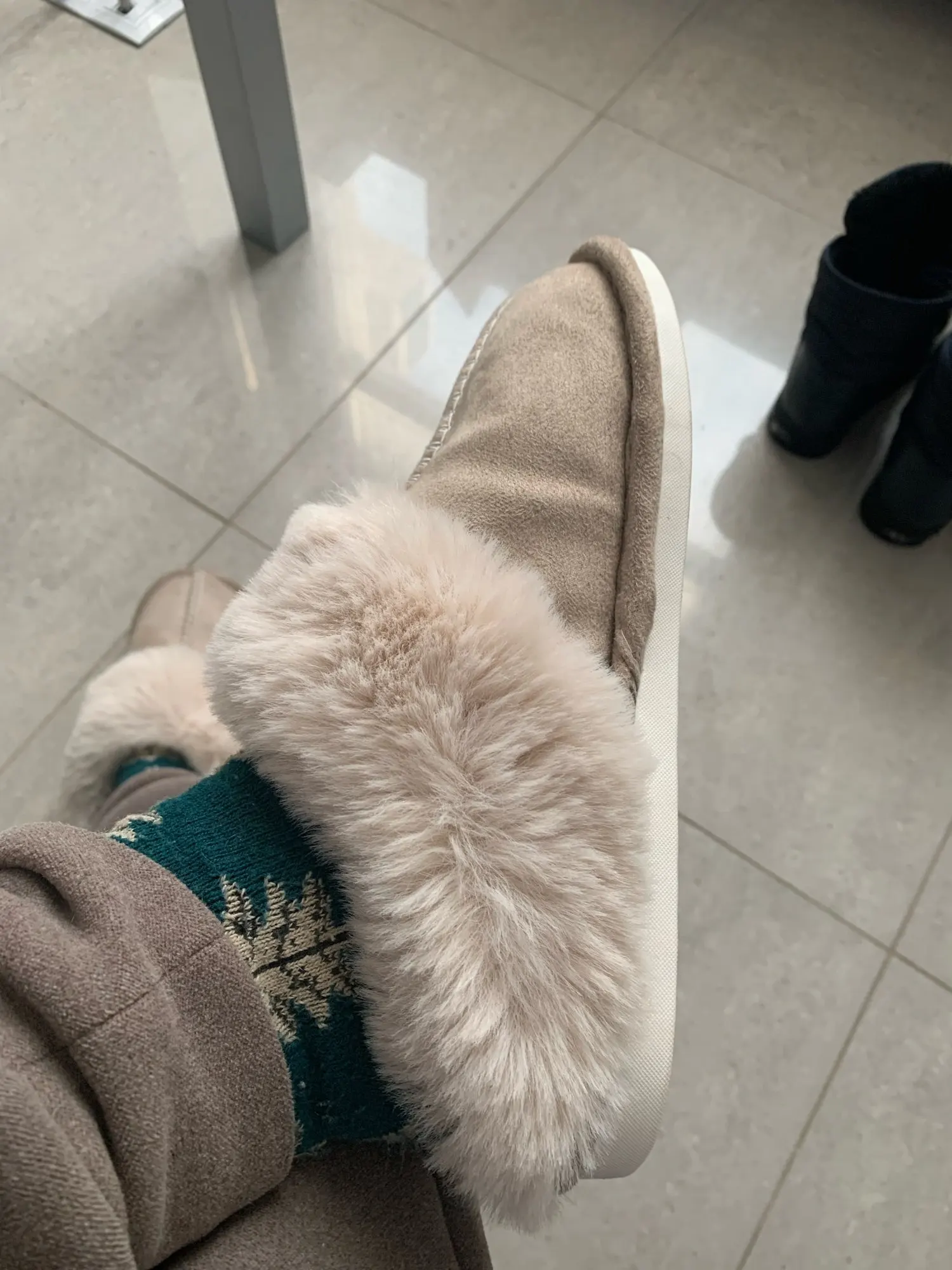 Очень красивые тапочки, очень теплые и красивый цвет.