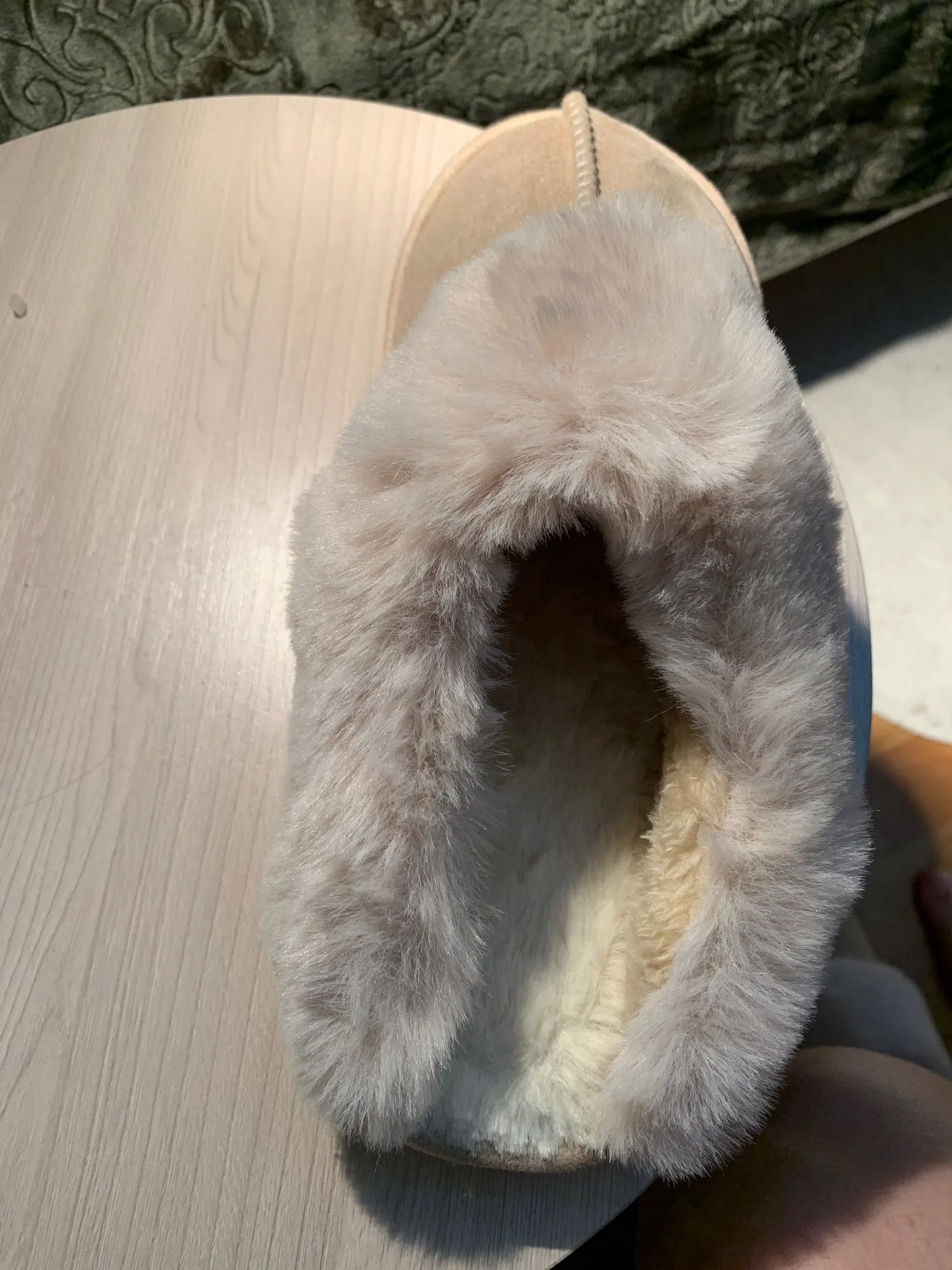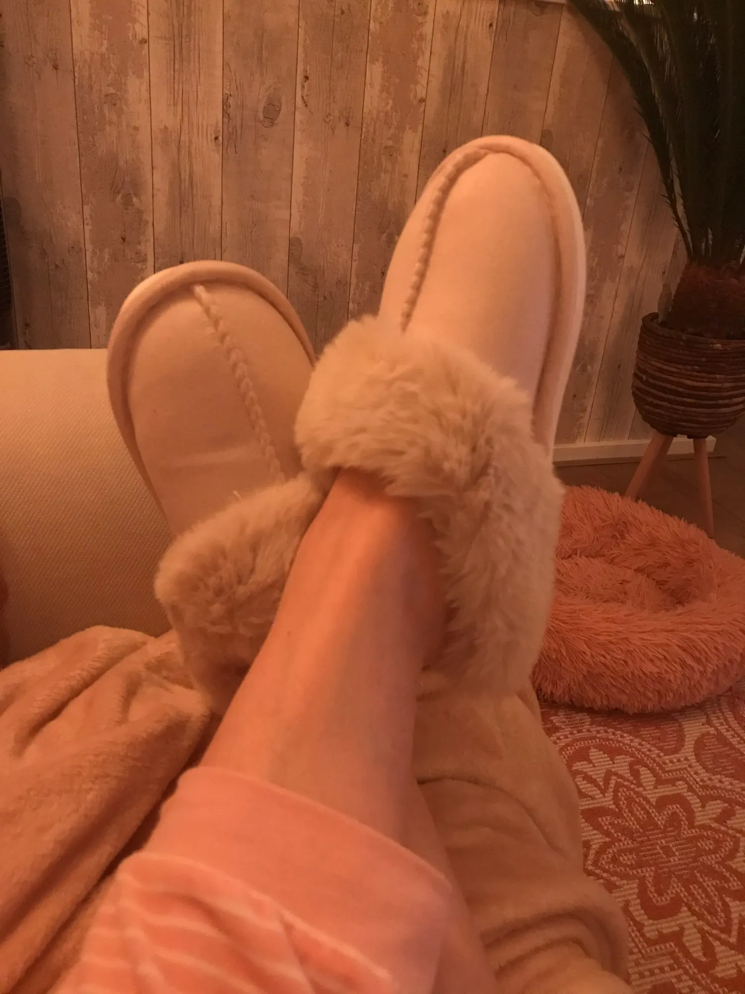 Тапки классные. Мягкие, удобные, всё хорошо и качественно прошито. Получила в Москве за две недели, продавец отправил сразу. На 39 размер брали 40-41. В меньший размер уже бы точно не влезли. Единственное бежевый цвет больше не бежевый, а светло розовы. Но мне не критично