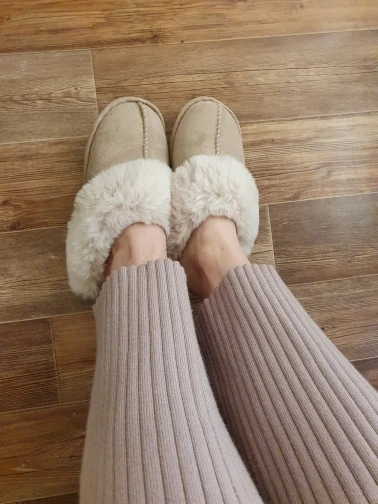 Очень красивые тапочки! Искусственные, но при этом тёплые и мягкие. Доставка чуть больше недели. Есть одно НО! Размер ! Начиталась отзывов и на свой 39 размер заказала 41. Оказались только только, мех может уляжется, но все равно впритык. Если у вас 39 размер (25см), то надо заказывать 42. А вообщем тапочки шикарные и стильные
