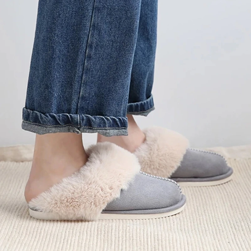 Тапочки женские меховые зимние из искусственной замши, теплые