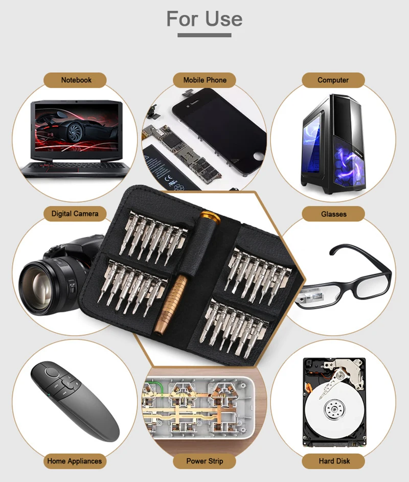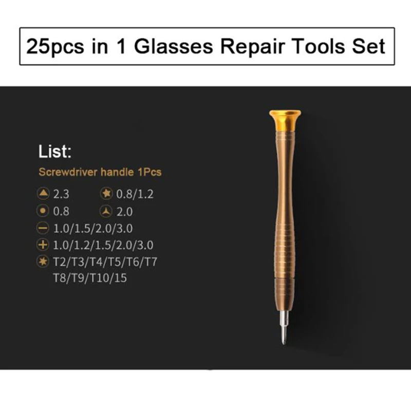 Магнитный Набор инструментов для ремонта очков, 25 в 1, кошелек, отвертки, чехол, аксессуары для ноутбука, сотового телефона, часов