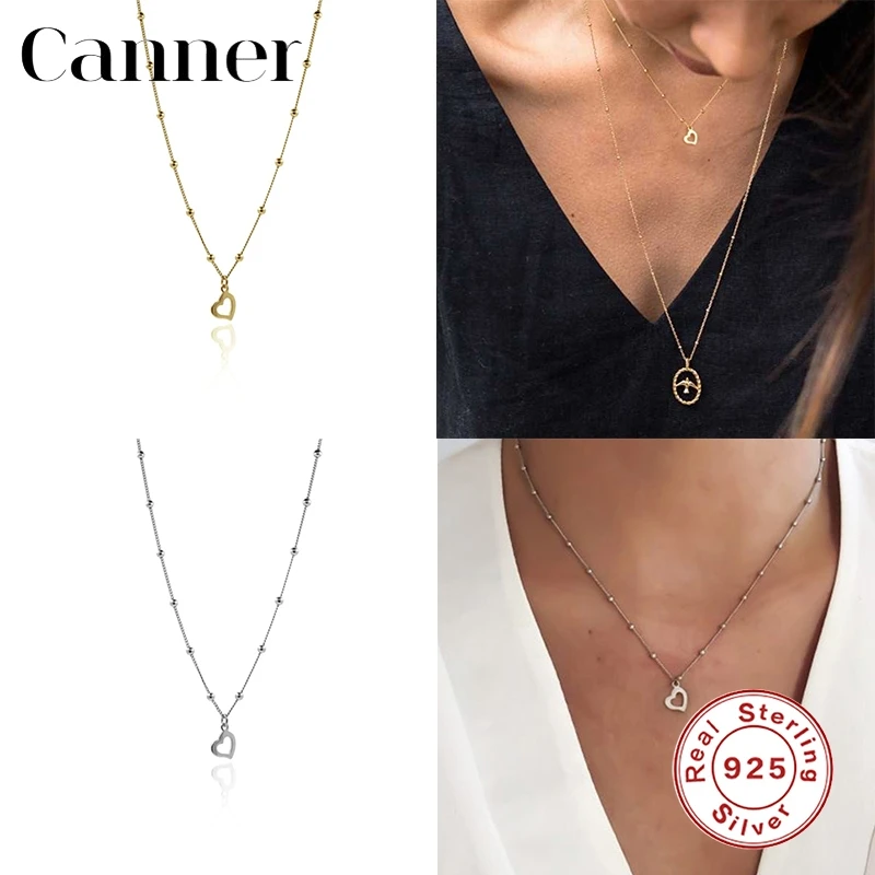 Женское колье-чокер Canner, колье из стерлингового серебра 925 пробы с цепочкой в форме сердца и звездочек, ювелирные изделия W4