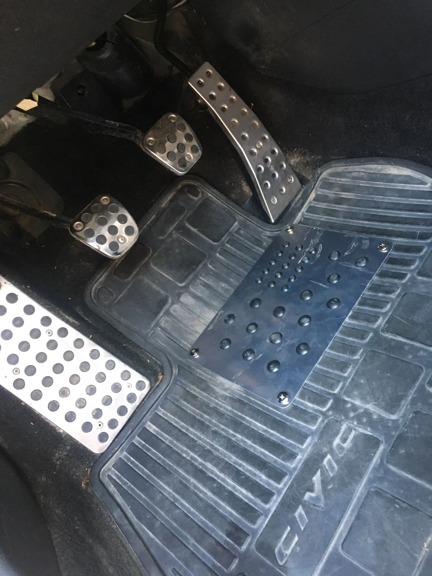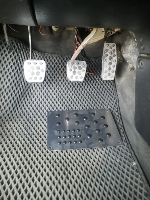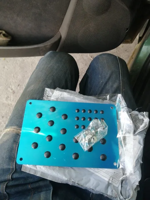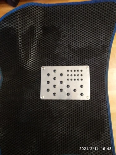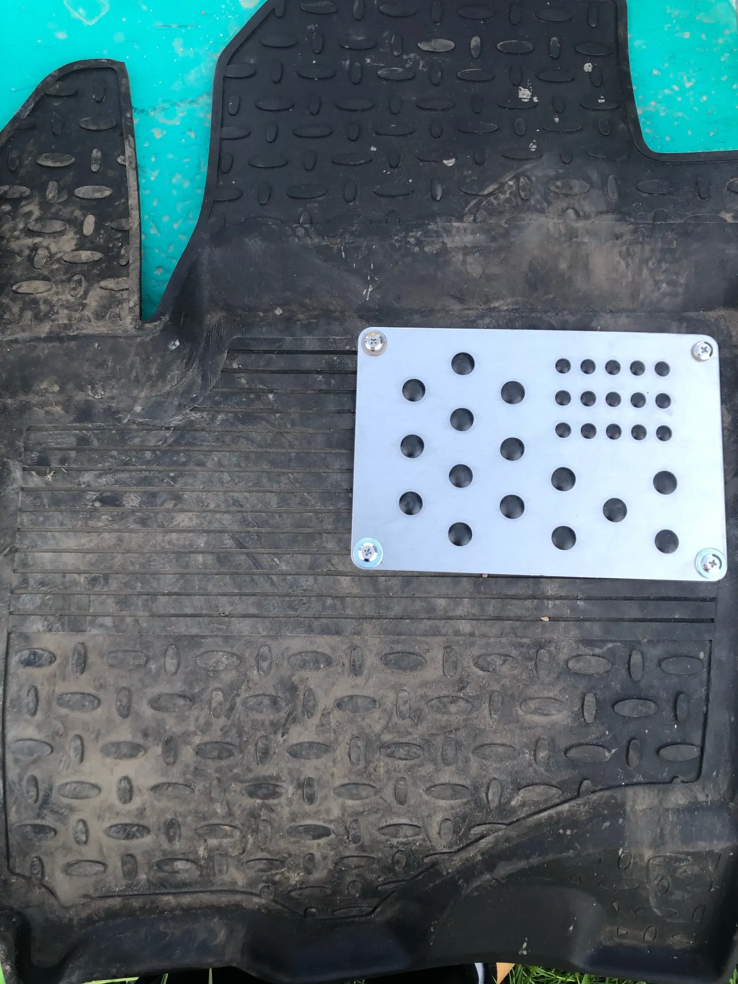 Пластина крепится четырьмя винтами с гайками имеющими развальцовку. Для резинового коврика гайки длинные, нужно подтачать гайки примерно на 1,5 мм. Я засверливал коврик сверлом 5,5 мм. Гайки вошли туго, Вода протекать под гайки не должна. На мой вкус, пластины хватит и на автомат и на ручку со сцеплением.