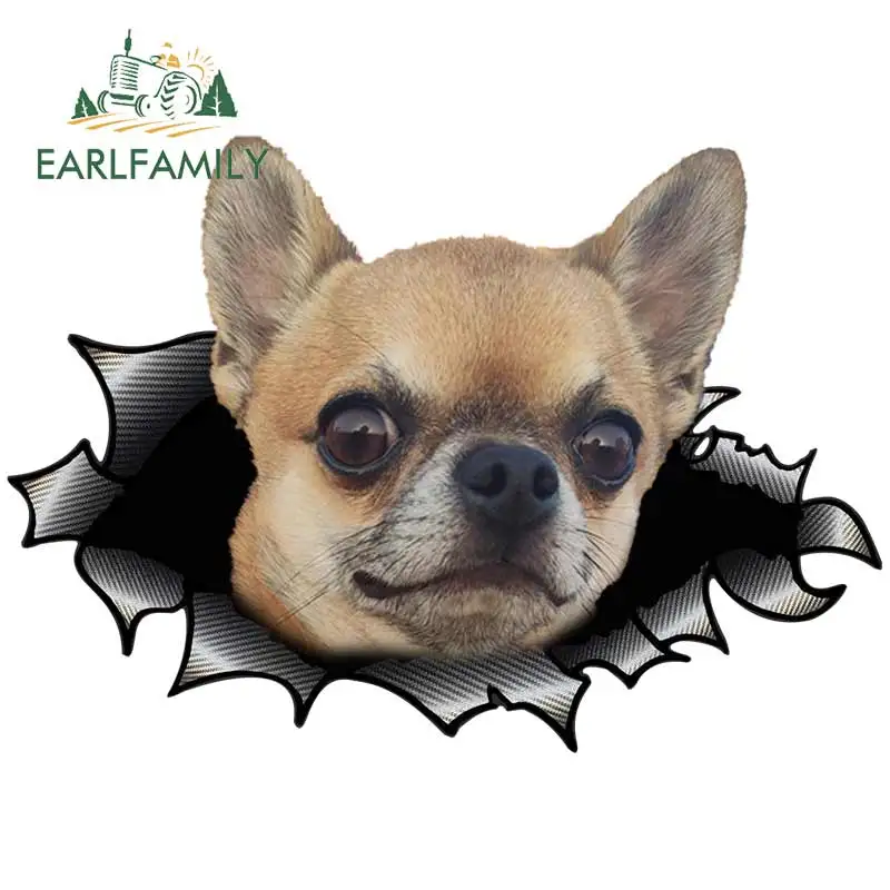 EARLFAMILY 13 см x 9,2 см Милая рваная металлическая наклейка Чихуахуа Светоотражающая виниловая 3D наклейка на багажник автомобиля бампер Декор домашнее животное