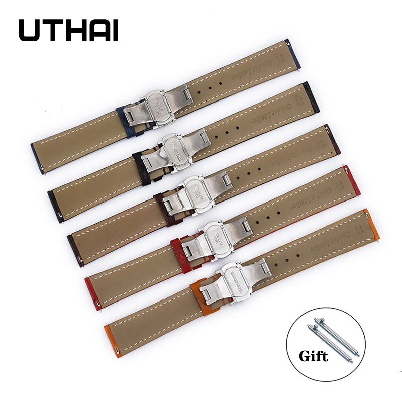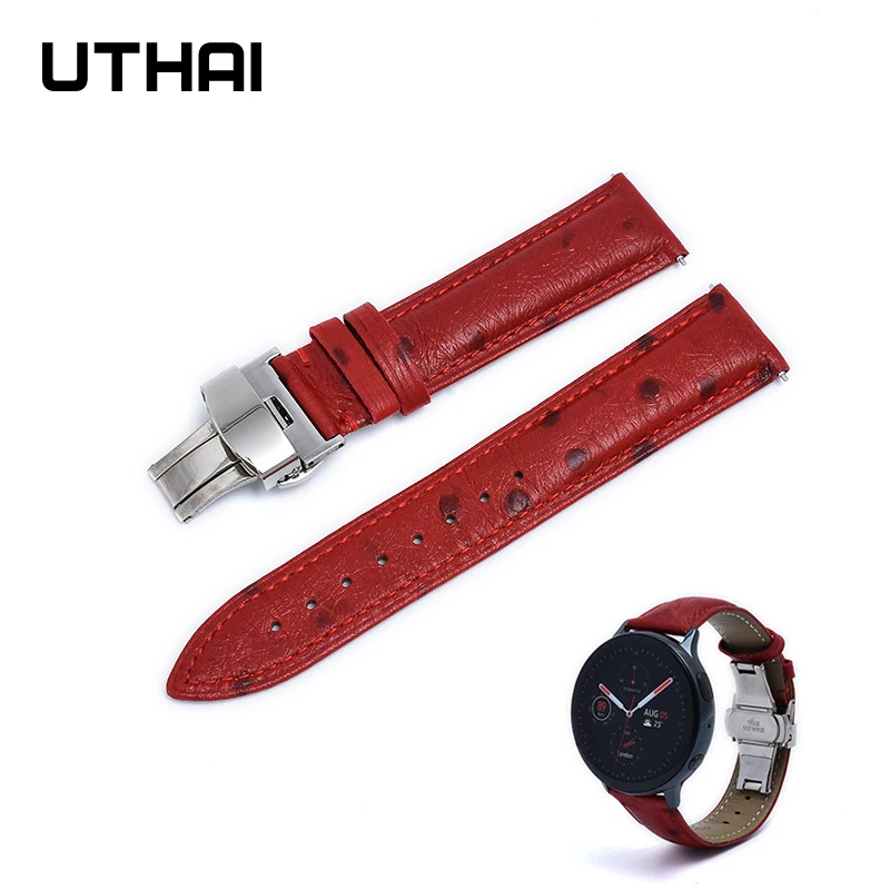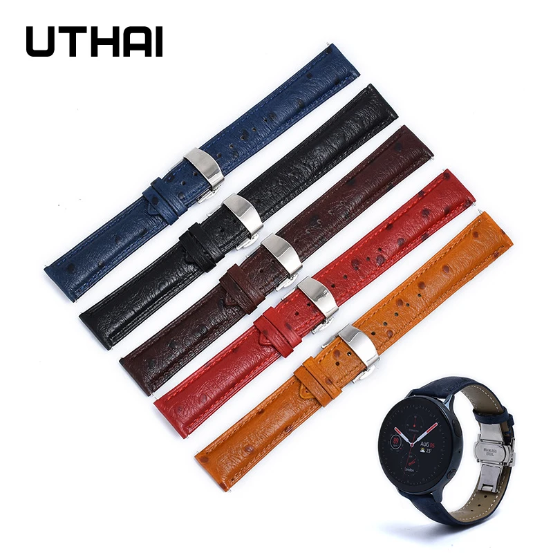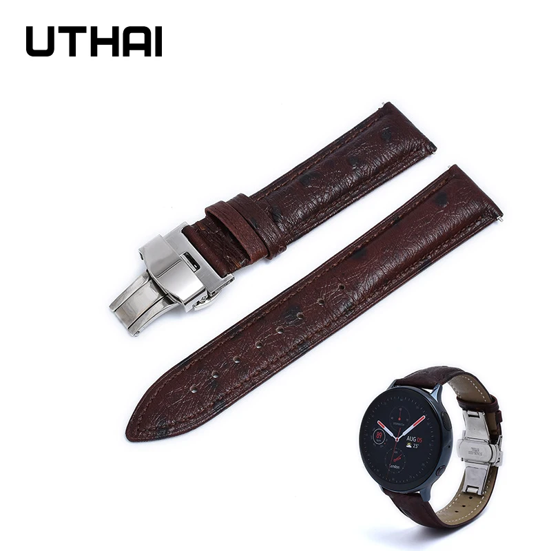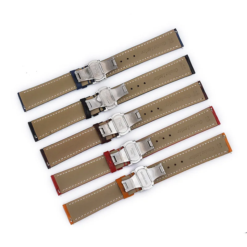 Ремешок для наручных часов, двухсторонний кожаный браслет из нержавеющей стали с застежкой-бабочкой, с рисунком страуса, 20 мм 22 мм