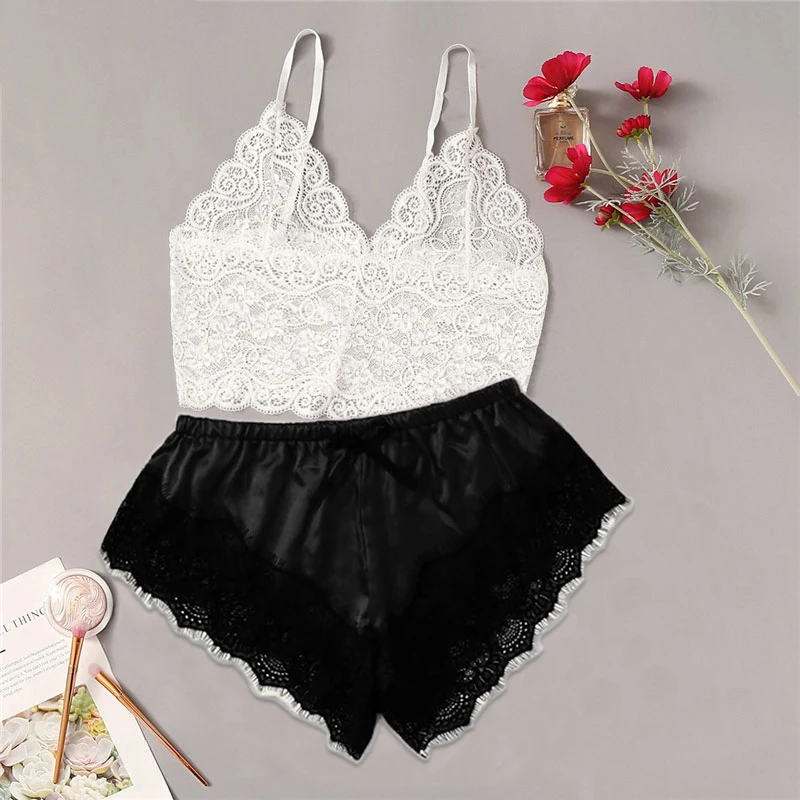 Женское нижнее белье, кружевные пижамы, комплект из 2 предметов, се...