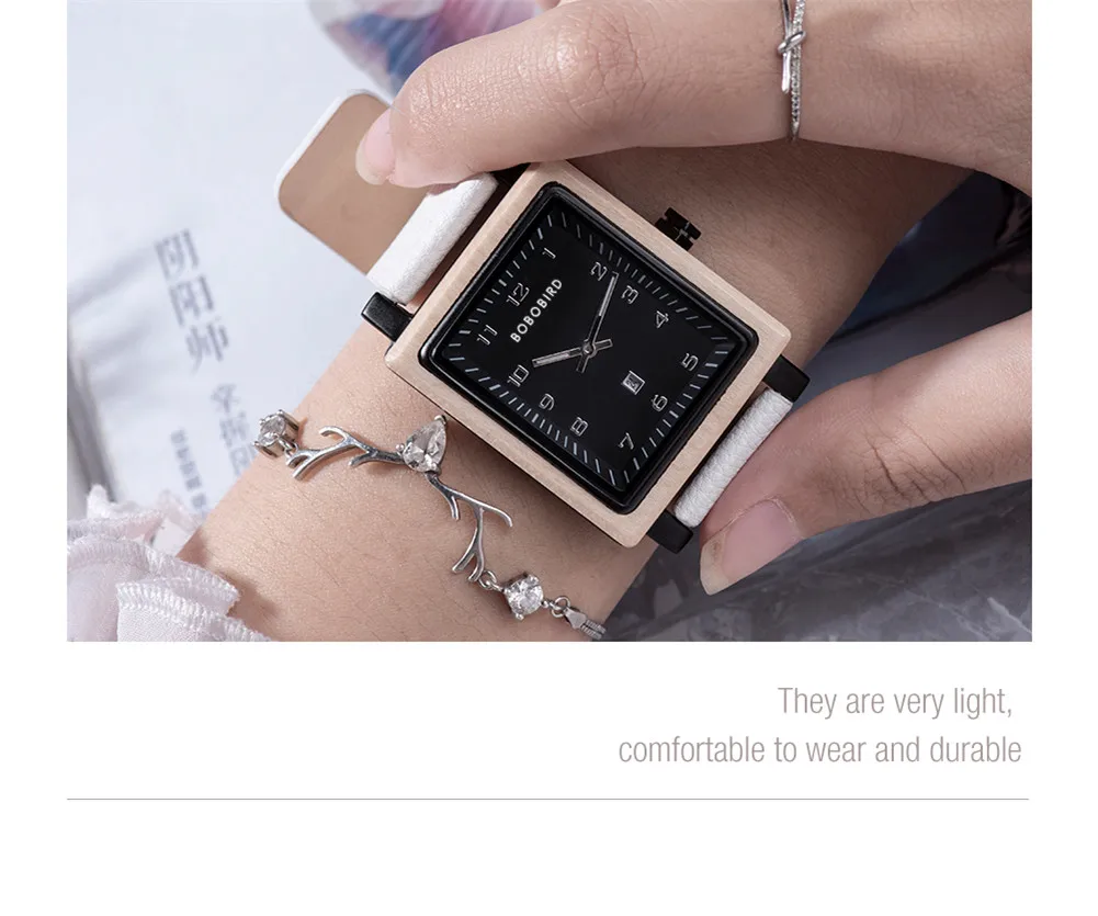 Часы наручные BOBO BIRD женские, деревянные часы из натуральной кожи, с часовым механизмом, в коробке