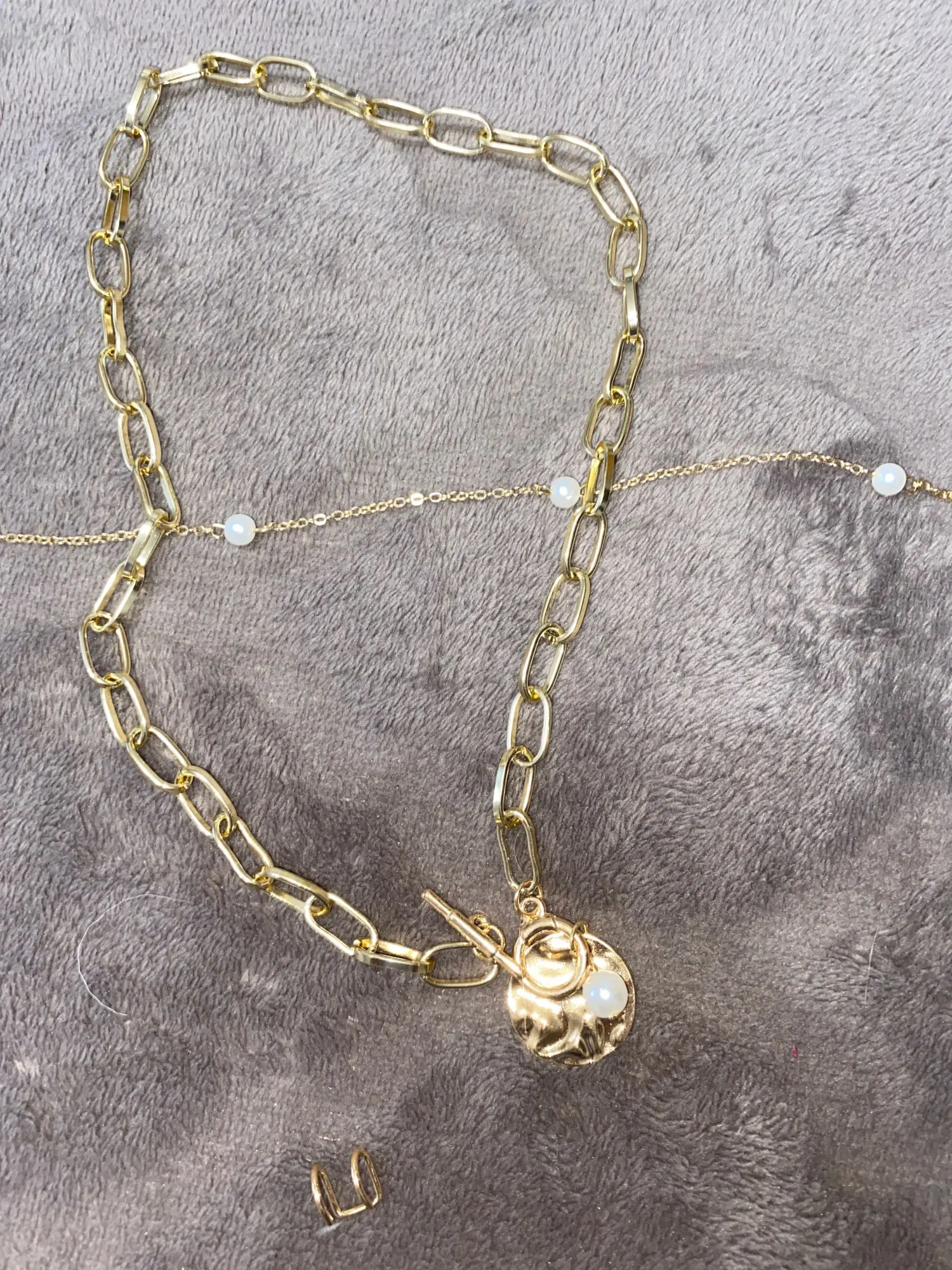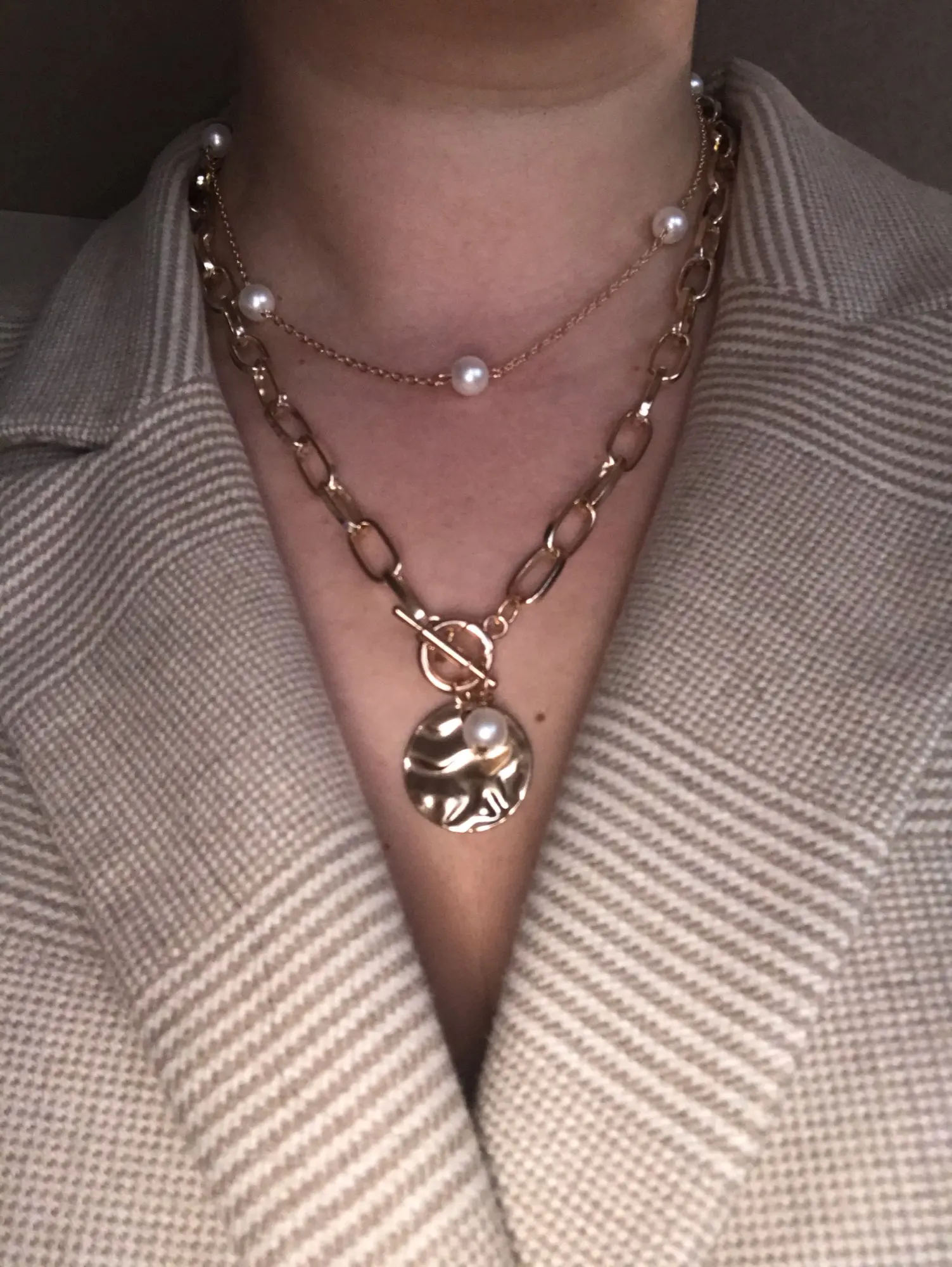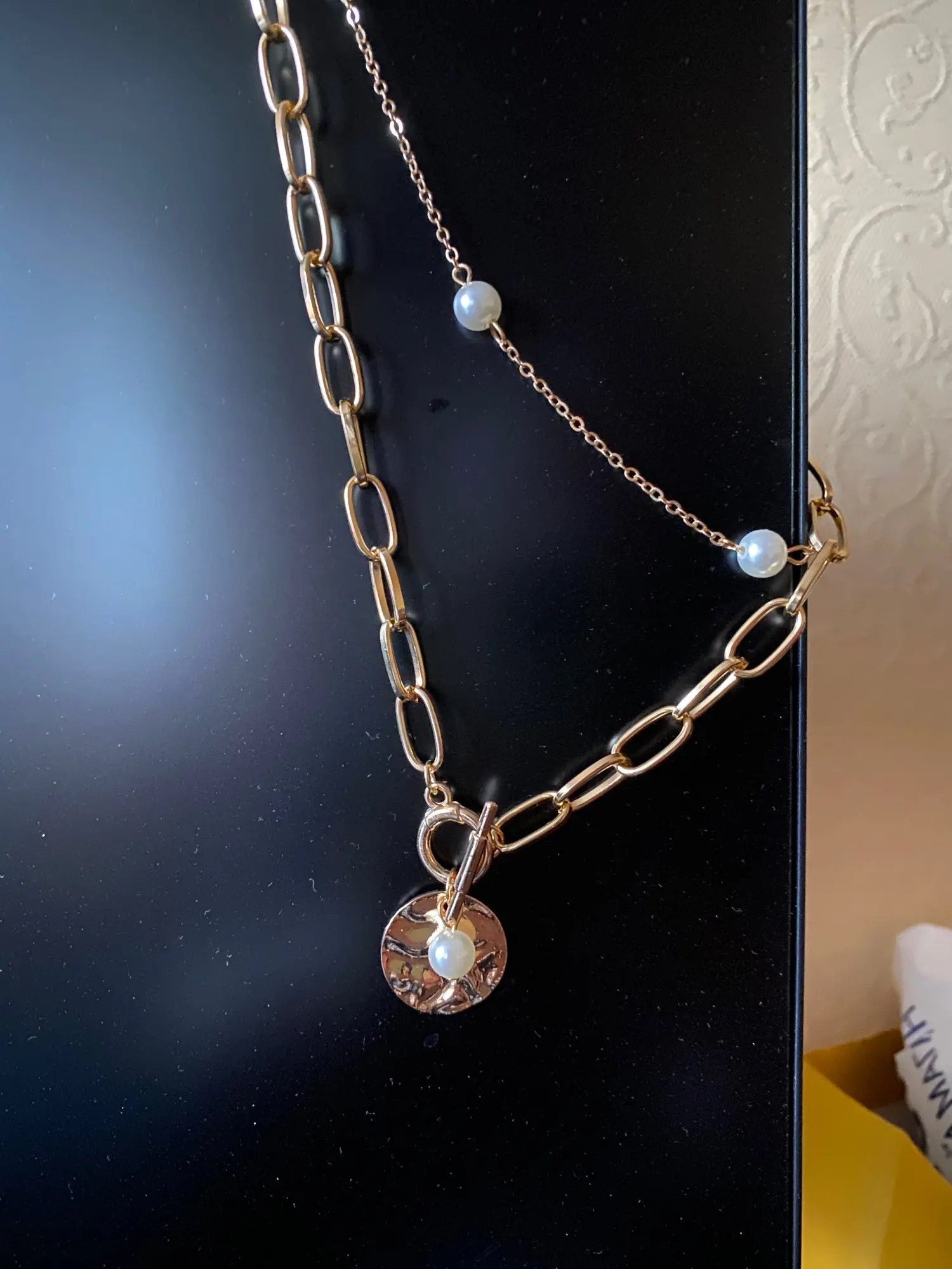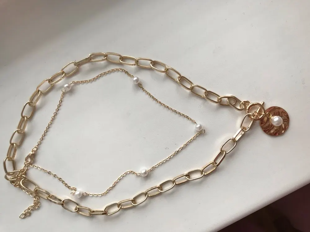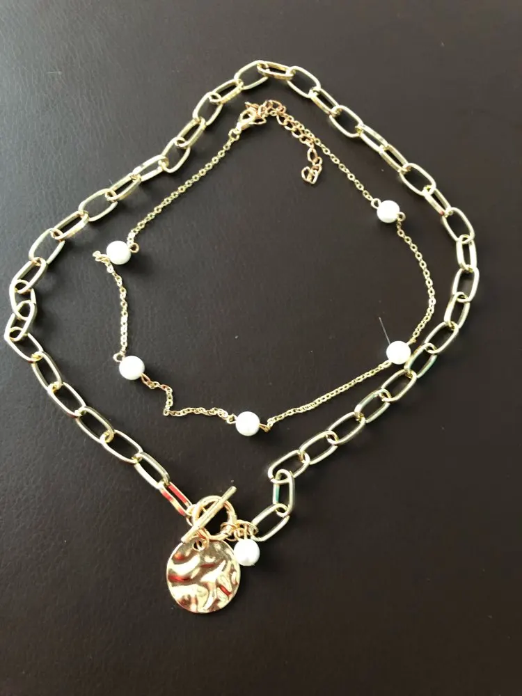 Цепочка-колье женская многослойная с жемчугом, 2 шт.компл.