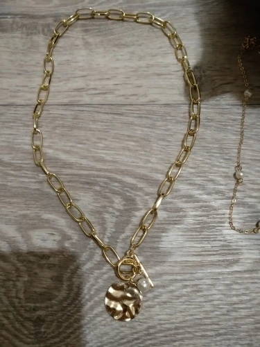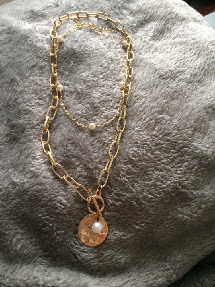Украшение классное, основной цвет метала, тоже красивый ( на большой цепи), жаль конечно, что на медальоне он не такой же. Мне пришло разорвано и с одной стёртой бусиной, но заезду я не снимаю, потому что за эти деньги, оно отличное .