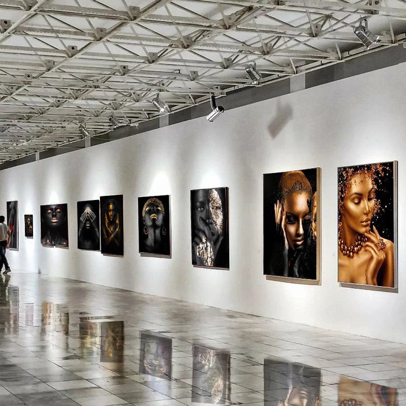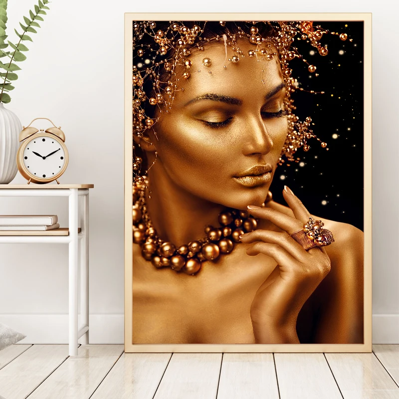 Картина на холсте для гостиной, Африканский художественный черный и золотой женский домашний декор, светильник, роскошная фигурка, Скандинавская настенная живопись Прикроватная картина современного искусства