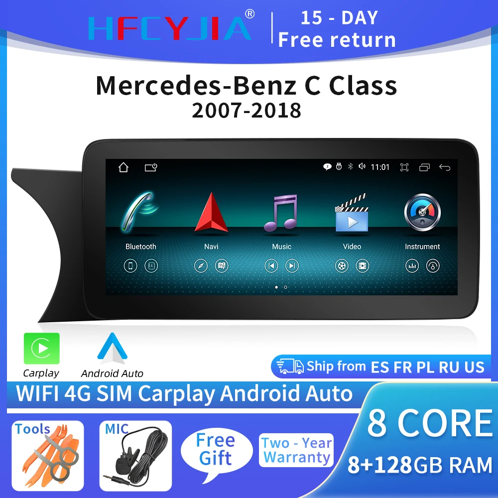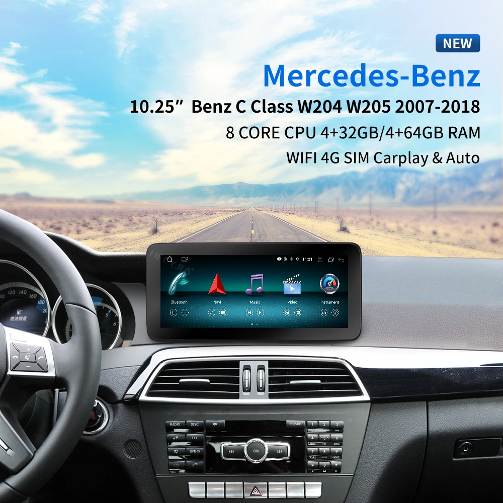 Автомобильная мультимедиа-система, 10,25 дюйма, для Mercedes Benz W204 W205 2007-2018, Android 10, Wi-Fi, BT, GPS