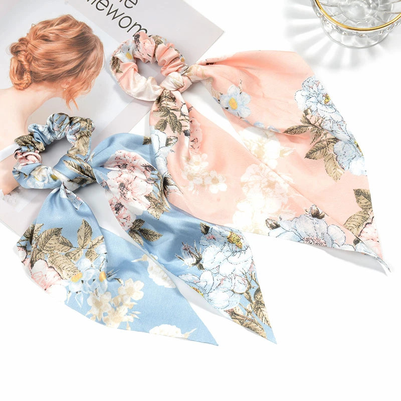 Модные аксессуары для волос с принтом, Длинные ленты для шарфов, резинки для телефона, эластичные резинки для волос с держателем, женский головной Убор