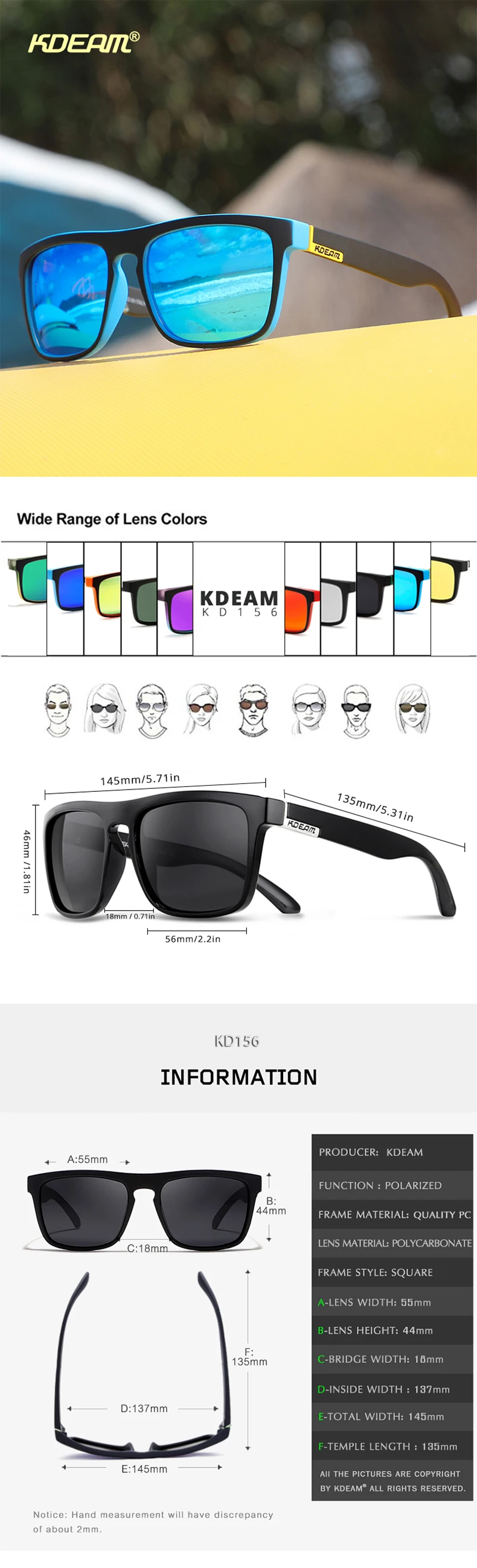 Солнцезащитные очки KDEAM KD129 мужские, модные квадратные поляриза...