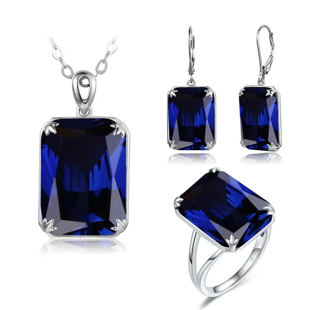 Бренд: Rosewood StoryТип камня: синий сапфирЧеткость камня: VVSЦвет камня: прозрачный, синийФорма камня: квадратнаяТип металла: Настоящее 925 пробы сереброMeatal Цвет: античное сереброДоступные размеры кольца: США #5,#6, #7,#8,#9,#10Упаковка:1 * Серебряная полировальная ткань,1 * Изысканная Подарочная коробка,1 * Кольцо с драгоценным камнем1 * пара драгоценных камней серьги1 * кулон с драгоценным камнем