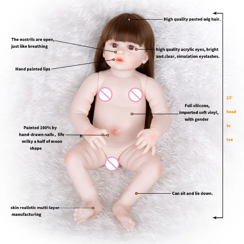 6) Структура:Голова и конечности изготовлены из силиконового винила. Можно положить в воду. Импортированное мягкое виниловое сырье, нетоксичное; Кукольные конечности могут быть активными, они могут сидеть или лежать, не могут стоять, говорить или питаться.