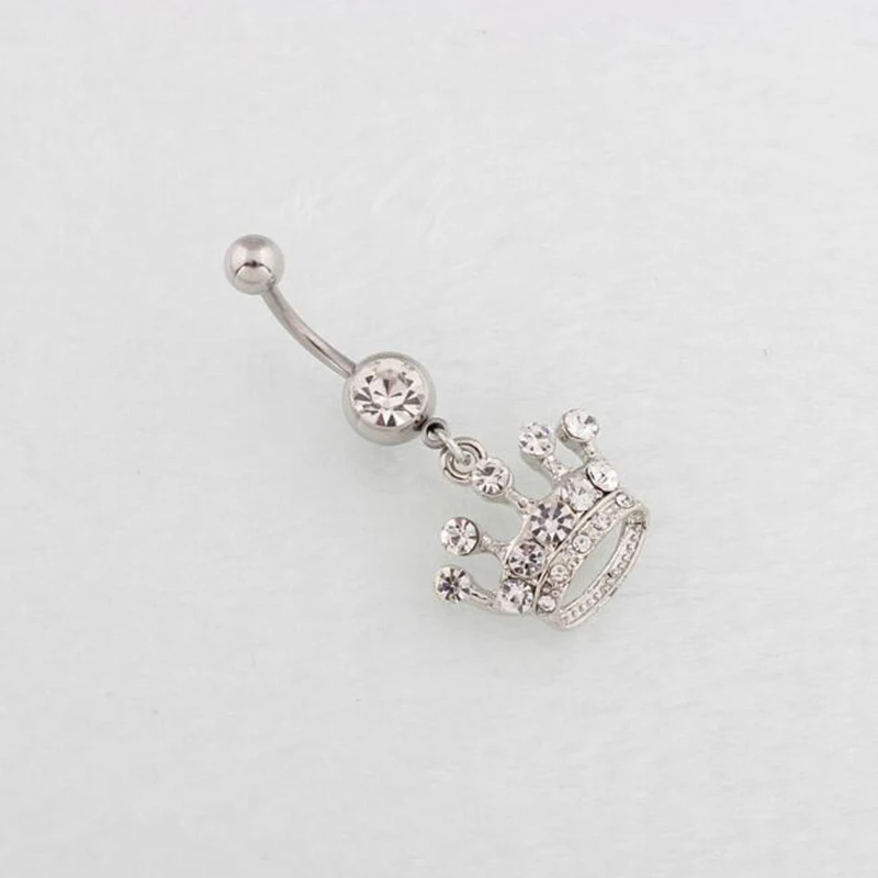 Пикантные висячие кольца для пупка, пирсинг живота, Корона из хирургической стали с кристаллами, женское украшение для тела, женские аксессуары