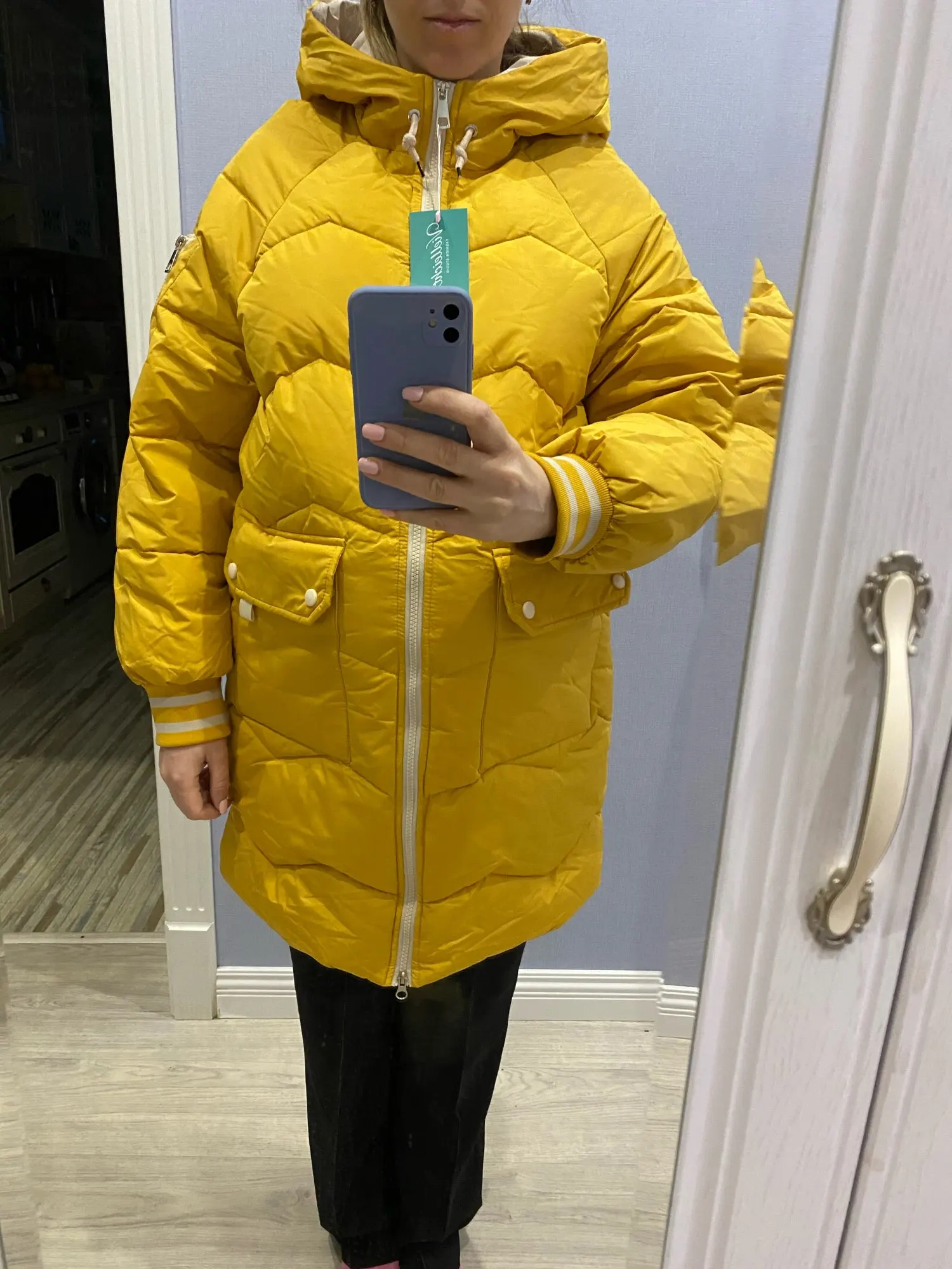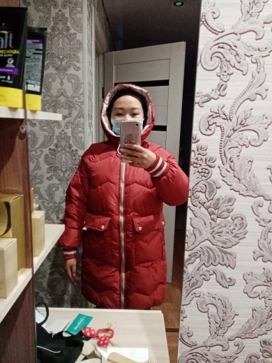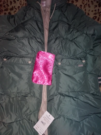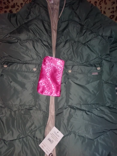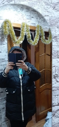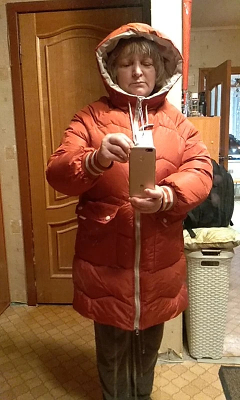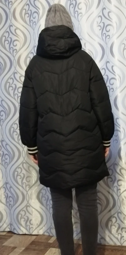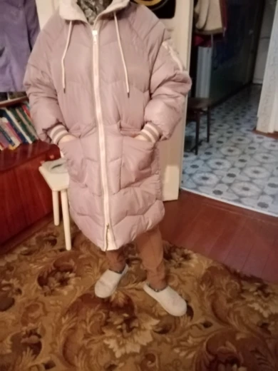 Куртка которая очень полнит, но это такая современная модель. Высылала продавцу свои параметры и продавец решил отправить как и заказала 2xl. Она на размера два больше, но я даже рада, с тёплым свитером норм. Материал на ощупь как целофан с картоном (ну это просто на ощупь) сильный шорох от неё. На холодную морозную зиму -20 не пойдёт, максимум до -10. Рукава короткие и резинка в конце. Норм за 17.