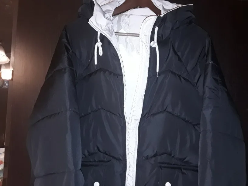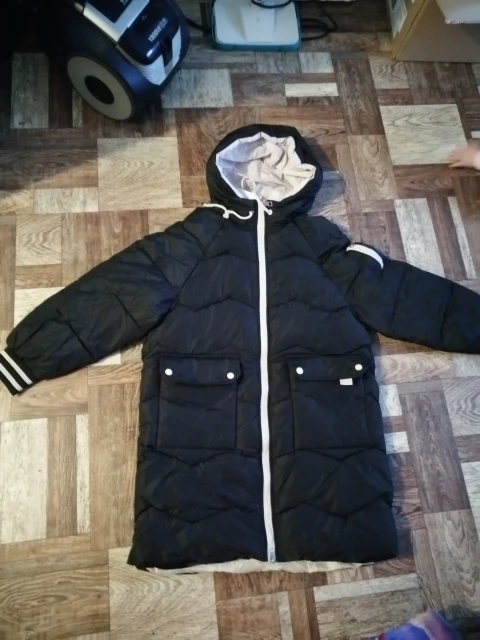 Пуховик получила.. Обычно такие вещи покупаю в магазинах, но сложившейся ситуацией решила заказать.Начиталась отзывов, спасибо всем кто их оставляет. Честно за такие деньги, другого не ожидала. Качество хреновое, швы не прострочены, см фото, молния хлипкая.... В плечах норм, сам как мешок. На 44_46, взяла L. Утонула!!! Одевать только на дачу или в лес, на постоянное использование _НЕТ!!! Продавец умничка! 10 ++++! На смс отвечает, советует размер... Просто душка. И дошла посылка очень быстро до Москвы. За это ему спасибо! Сзади какие то полосы по всему пуховик , но на фото к сожалению не видно.