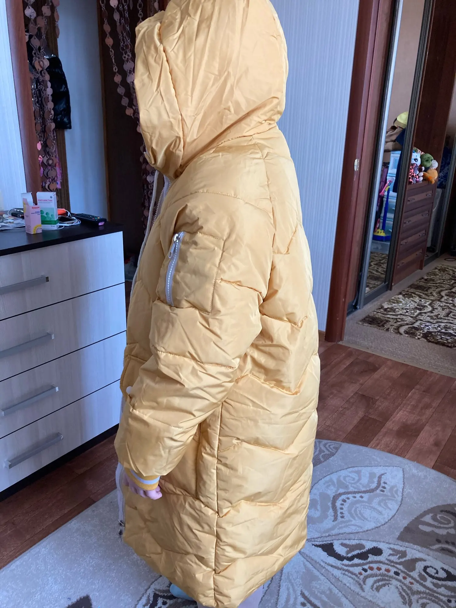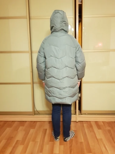 куртка выше колена, цвет приятный. проутюжила и подклад и верхнюю ткань. швы хорошо прострочены. утеплитель как в моей куртке, про которую в магазине сказали для "европейской зимы" до минус 15 °С , думаю, что будет хорошо в этой куртке. Прислали посылку быстро, ждала 16 дней. Как раз к нашему первому снегу. Спасибо за быструю отправку и доставку.