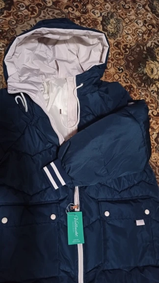 Куртка хорошая, размер подешел, на рост 156 брала M. Не воняет, нитки не торчат. Всё качественно сделано. Не очень толстый как и хотела, для минус 15 хорошо будет.