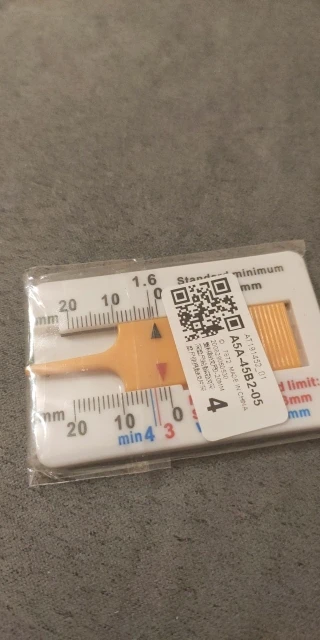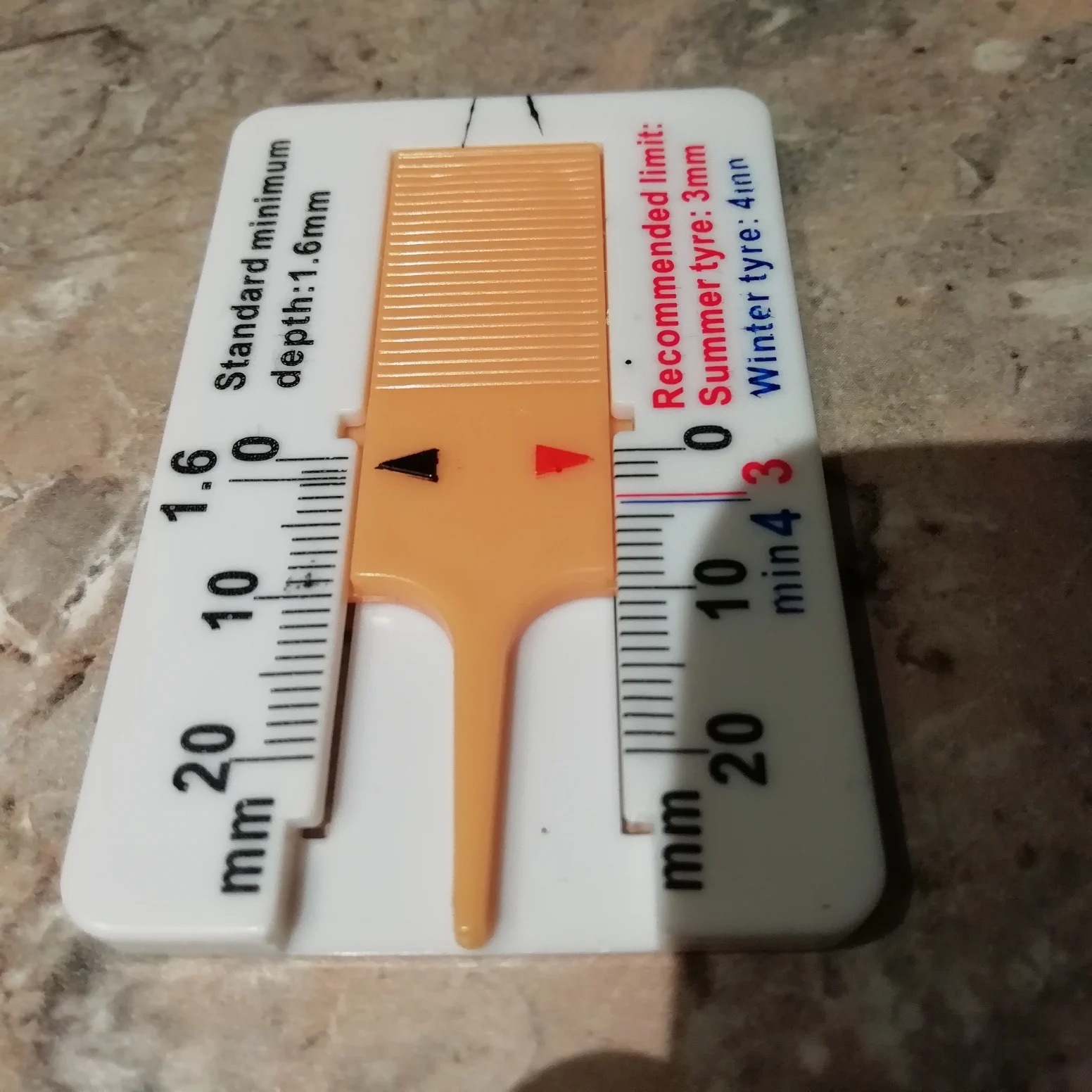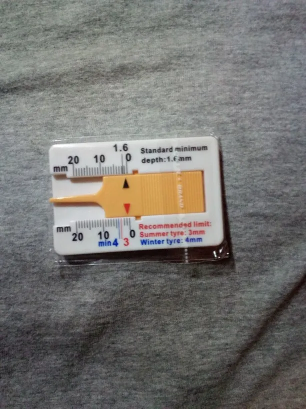 Продукт был относительно дешевым, и его очень легко проверить, что происходит с вашими шинами с точки зрения износа. Я просто оставляю его в коробке и измеряю, когда покупаю новые шины