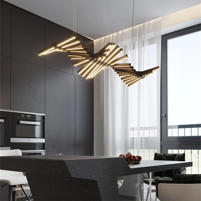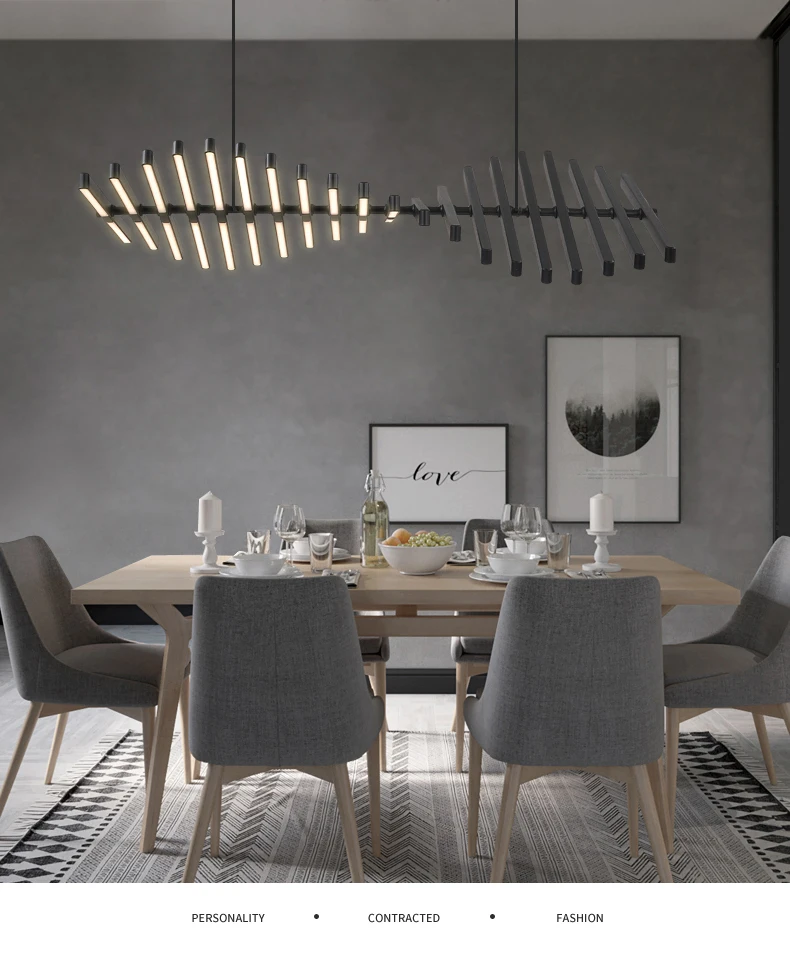 Вращающаяся люстра в скандинавском стиле для кухни, светодиодные декоративные лампы для столовой, приглушаемый светильник льник со скелетом для рыбы в гостиной