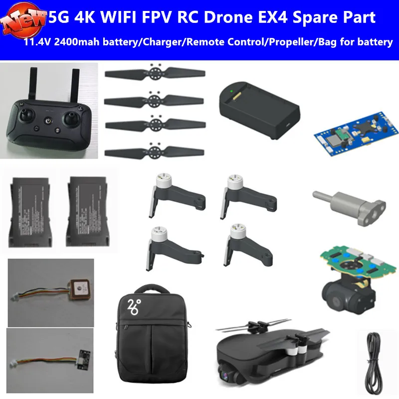 X12 5G 4K WIFI FPV GPS Smart Follow RC Drone EX4 запасная часть 11,4 V 2400mah батареязарядное устройствопульт дистанционного управленияпропеллерСумка для батареи