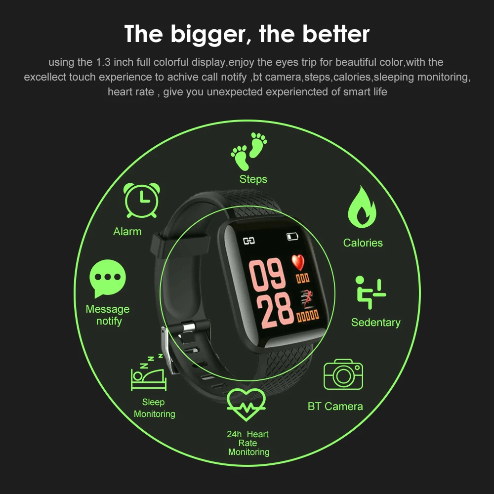 Особенности:1,3 дюймов TFT цветной экран с высокой чувствительностью и одним нажатием кнопки управления, которое может осуществить различные операции.Usb-разъем для зарядки, снимите ремешок на запястье, можно заряжать напрямую, легко и удобно.IP67 Водонепроницаемый для повседневной жизни, непрерывно записывает ваши ежедневные шаги ходьбы, расстояние и сожженные калории. Подходит для занятий спортом на открытом воздухе, поможет вам разработать научный план фитнеса.Поддержка уведомления о звонках и сообщениях, не будет пропущена важная информация.С профессиональным датчиком сердечного ритма, отслеживайте свой пульс в течение 24 часов, когда вы засыпаете, он будет автоматически контролировать качество сна и записывать данные в приложении.Спецификация:Модель: D13Тип: умные часыЦвет: черный, красный, синий, зеленый, фиолетовый (по желанию)Материал: ТПУ, пластикВерсия BT: BT 4,0Совместимость ОС: Android 5,0 и выше/IOS9.0 и вышеРежим работы: сенсорная кнопкаЕмкость аккумулятора: 150 мАчФункции: Настройка будильника, напоминание о сидячем положении, монитор сердечного ритма, шагомер, монитор сна, напоминание о звонках/сообщениях, удаленная камера и многое другое.Название приложения: Yoho SportsТип оповещения: вибрацияПосылка Размеры: 12*8*3 см/4,7*3,1 * 1.2inПосылка Вес: 43 г/1,5 унцииПосылка:1 * умные часы1 * Руководство пользователя