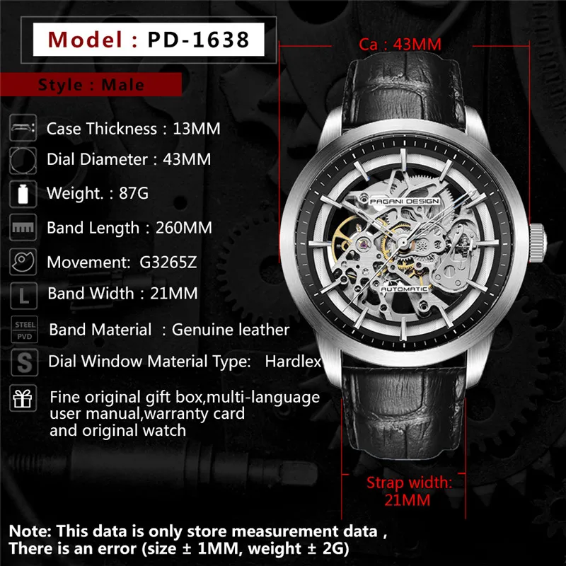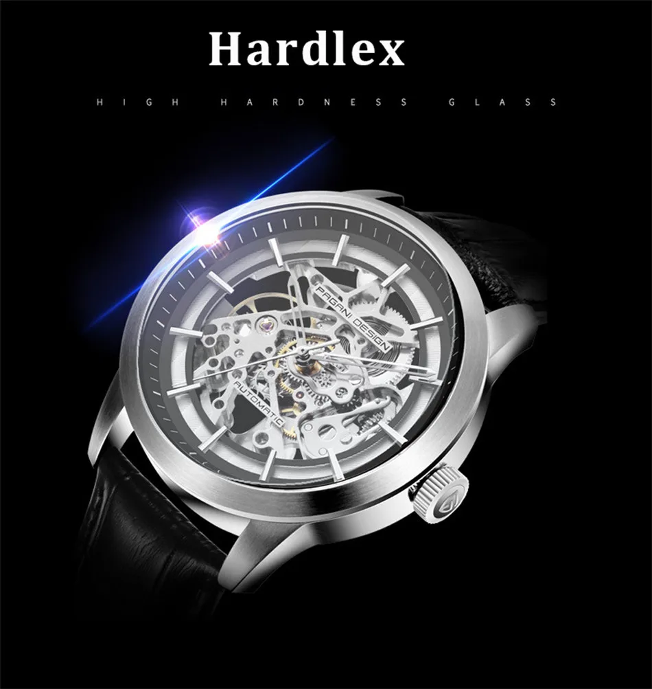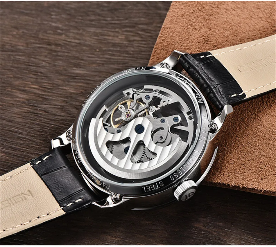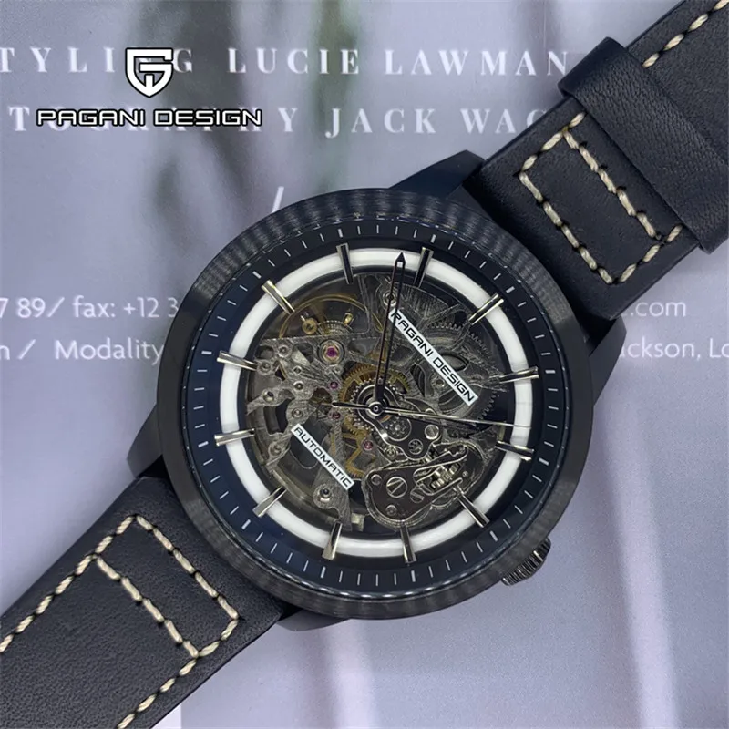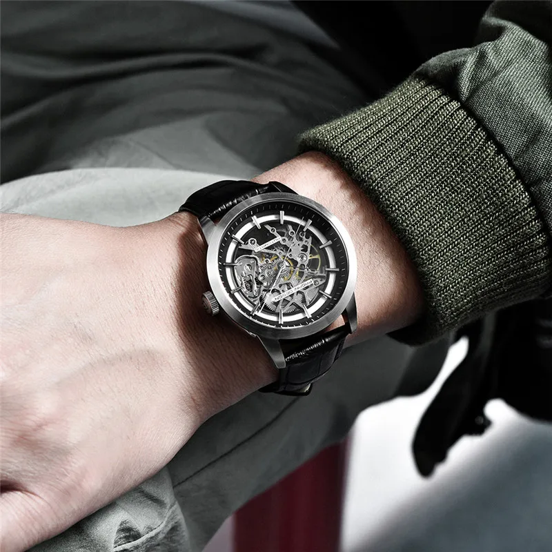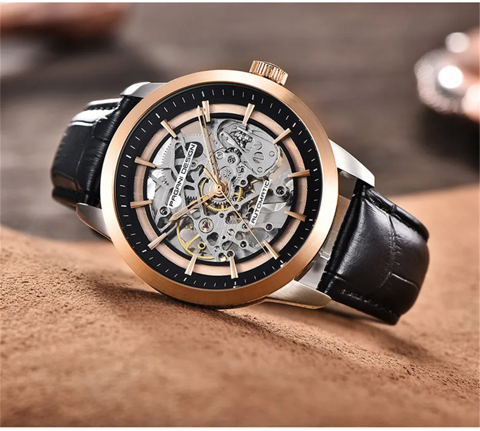 Часы-скелетоны PAGANI Мужские механические, с кожаным ремешком