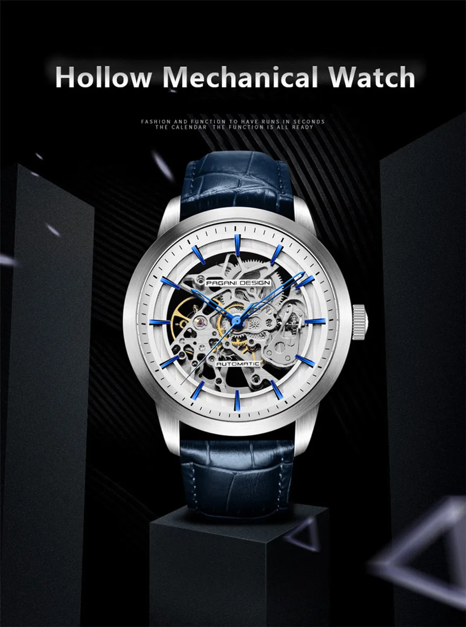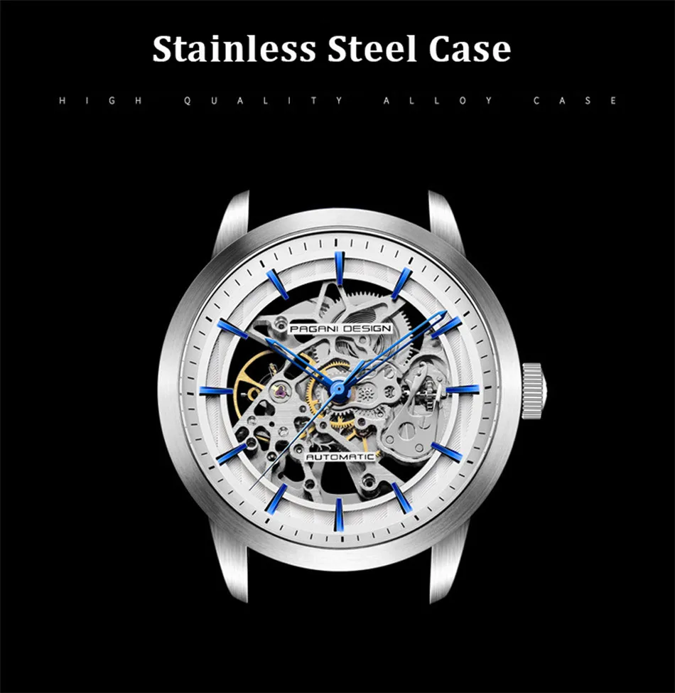PAGANI Дизайн Топ бренд Модные кожаные часы Мужские автоматические механические часы с скелетом водонепроницаемые мужские часы Relogio Masculino