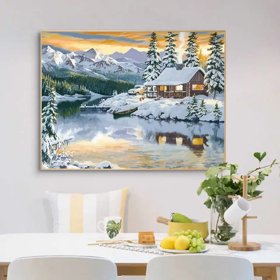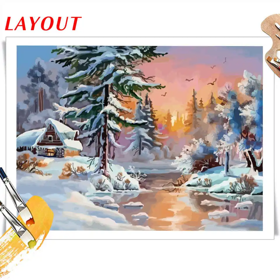AZQSD цвет по номеру зимний пейзаж краска по номеру холст краски ing наборы домашний Декор подарок без рамки 50x40 см ручная краска ed